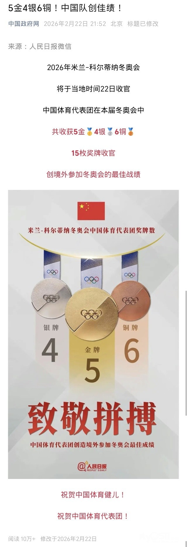 中国队5金4银6铜,创境外冬奥最佳战绩!