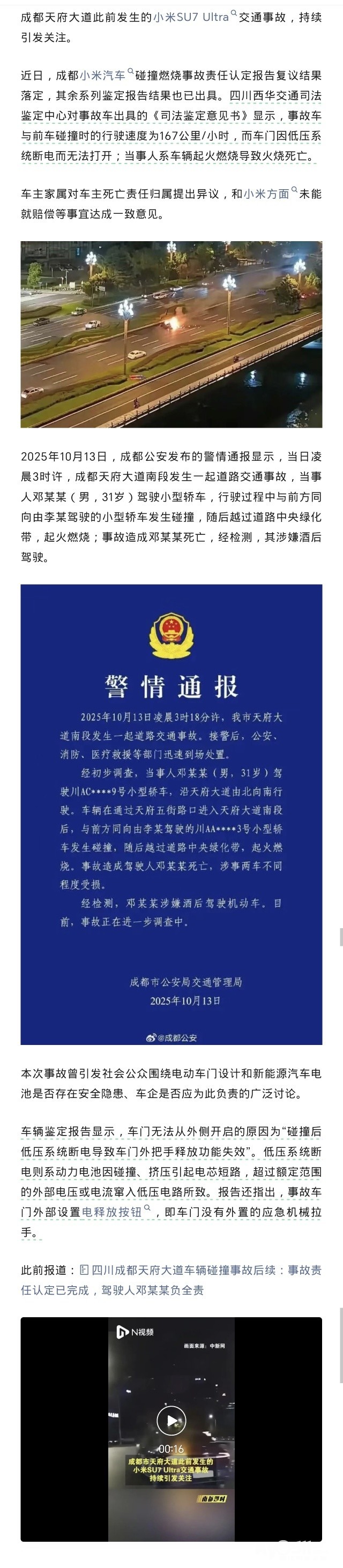 » 小米SU7成都碰撞事故新出鉴定结果披露