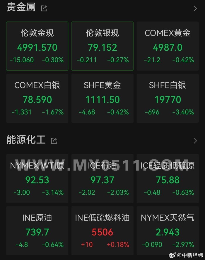3月18日上午,国际油价震荡走低。截至发稿,WIT原油日内跌幅超3%,ICE布油跌超2%。A股石油石化板块同步走低,洲际油气跌超8%,贝肯能源、通源石油、准油股份等多股大跌。黄金、白银同步走低,现货黄金跌破5000美元/盎司,现货白银一度跌至78美元/盎司附近。据中国基金报,市场分析人士指出,市场普遍预期的贵金属避险属性“隐身”,核心原因在于交易逻辑的根本性转变,市场对贵金属从“避险需求”转向了“滞胀担忧与货币政策宽松预期降温”。