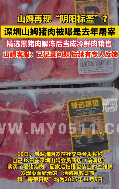 3月19日,深圳网友姜女士在社交平台发帖称,自己18日在深圳山姆会员商店(前海店)购买了黑猪瘦肉,回家后扫描包装上的二维码,发现页面显示的“活猪接收日期”和“屠宰日期”均为2025年11月9日。