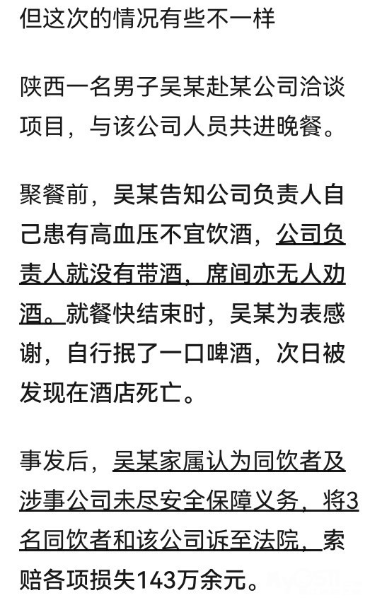 自称高血压不宜饮酒!男子聚餐抿一口啤酒后死亡,家属索赔143万!法院判了
