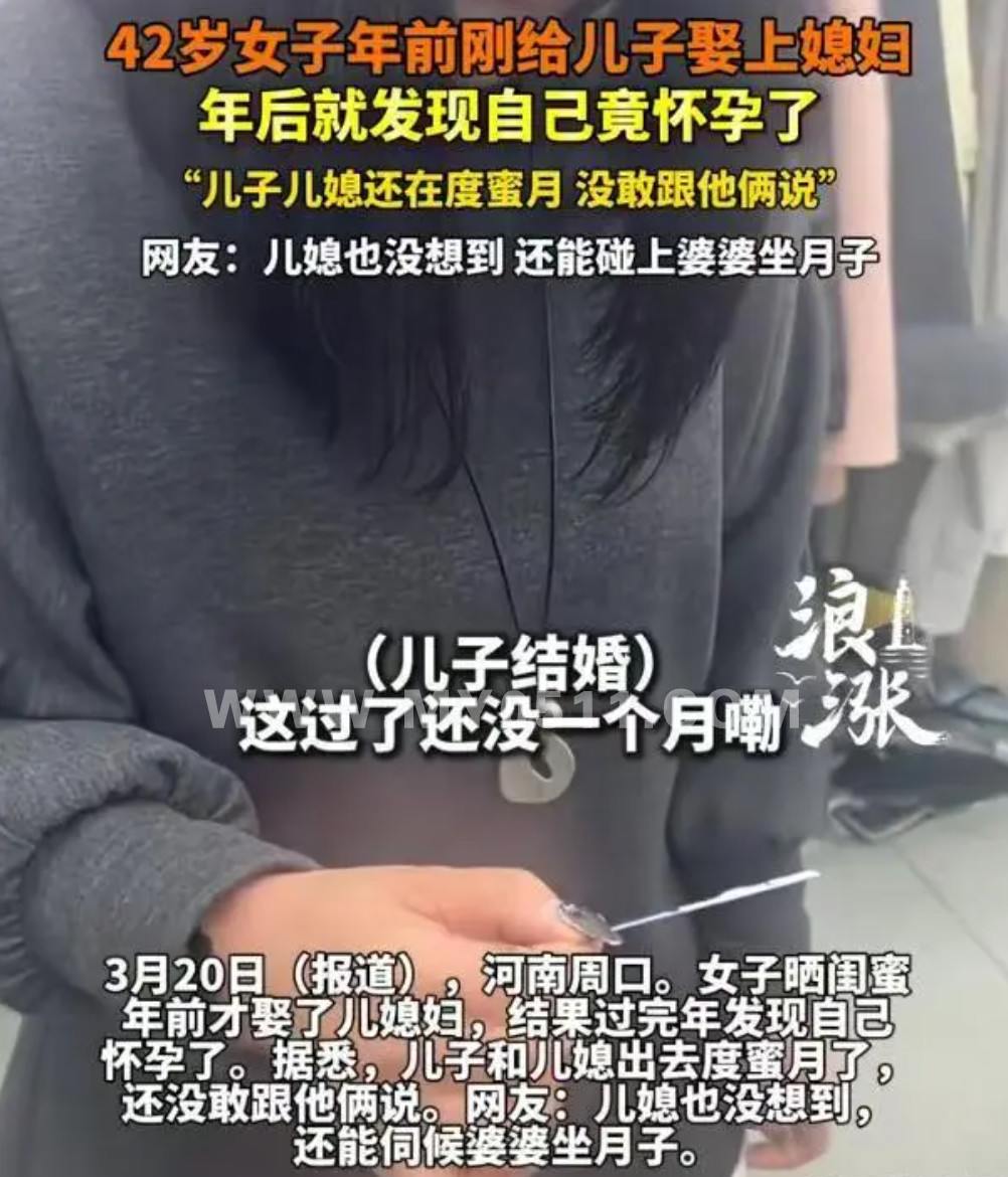 在河南周口,一名42岁的女子年前刚为儿子办完婚礼,把儿媳妇迎进了门。然而,儿子和儿媳还在外面度蜜月时,她却发现自己怀孕了,面对这个突如其来的消息,她还没敢跟儿子儿媳说。