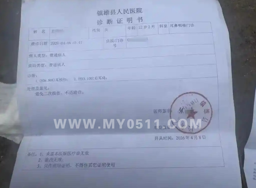 曹女士提供的女儿就医时的门诊病历和医院出具的诊断证明书显示,王童被诊断为耳损伤和右耳耳鸣。