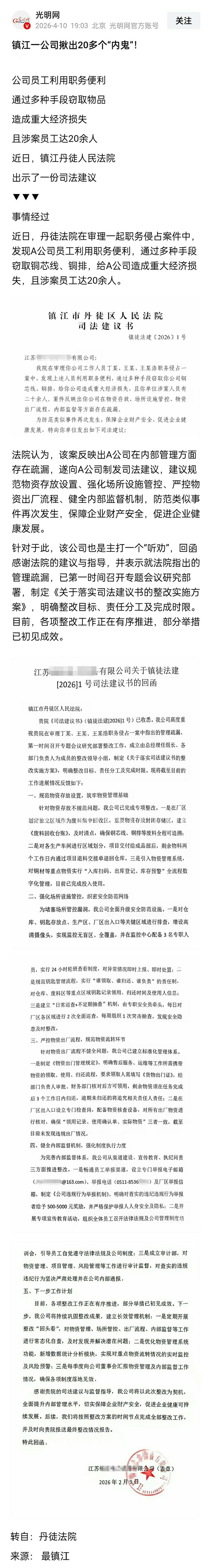 说明这个公司反腐动真格了。