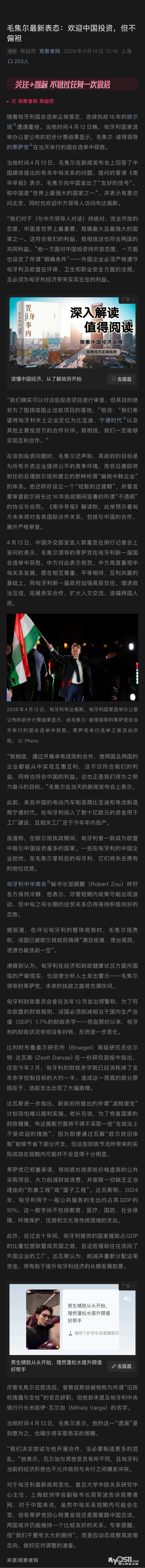 » 毛焦尔最新表态:欢迎中国投资,但不偏袒