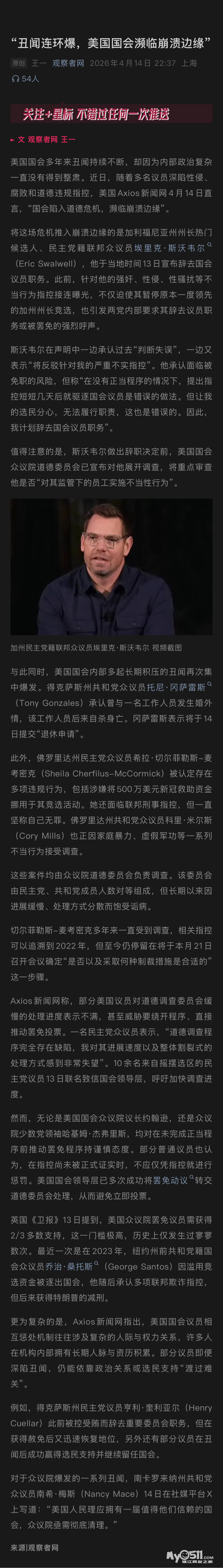 » “丑闻连环爆,美国国会濒临崩溃边缘”