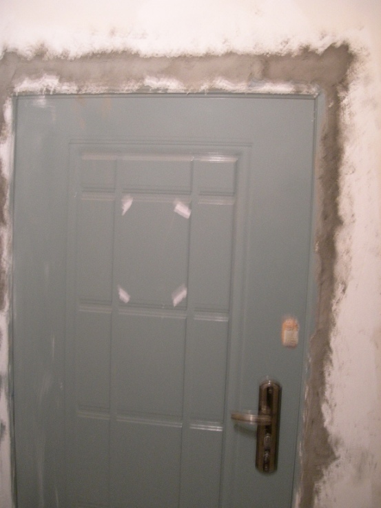 地下车库楼道的门更换后,一直没人把门与墙体的缝隙填实,在一位业主老大爷反复找物业多次后,物业终于安排人做了!