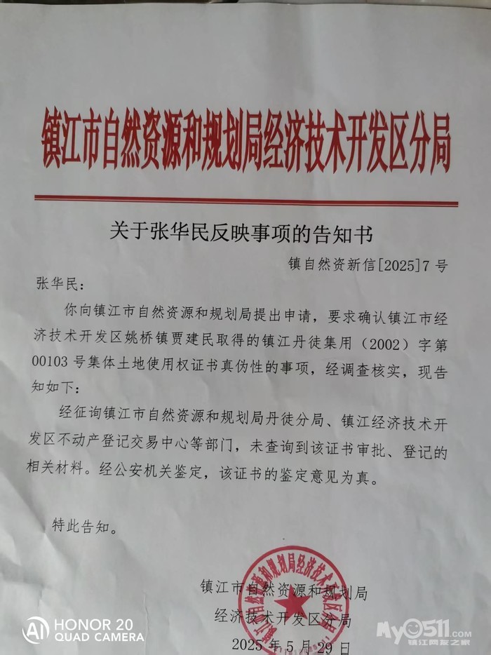 你们回应丹徒和经开区都没查到该记录,这就反映两方面的问题,一是是当时土管局工作人员失职造成档案丢失而没档案,这充分暴露了政府机关的工作混乱不负责任的态度;二是基层工作人员利用职务之便私下非法为贾建民办理的假证,本本是真的手续是假的。至于贵局说以公安鉴定为真,我要说公安只对小本本的公章进行比对,而没对整过办证事实进行调查,章没问题不代表证没问题啊!这是一起工作人员利用职务便利,利用当时管理部门管理混乱的情况,盗用空白证书办的假证,该事已严重违法,要求贵局领导认真调查处理,不要用呼延老百姓的态度来应付处理该案!给我一个合理合法的说法。我叫张克民,联系电话15105292700