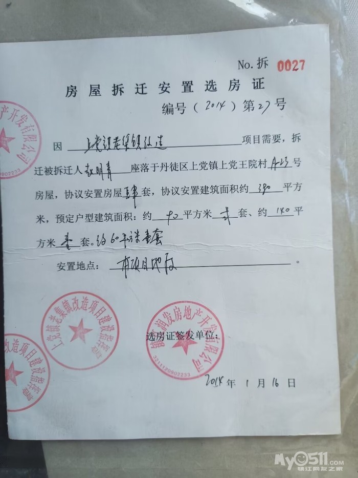 镇江市市场监管局领导:现向你单位反应开发商欺诈行为,请依法查处。 2013年10月,镇江市润发房地产开发公司,社会信用代码:913211120566893538法定代表人:马国兴,13501983076,在镇江市丹徒区上党镇王院村58.6亩范围内准备建设商业综合体,向镇江市规划局丹徒分局提供相关资料,丹徒规划分局也出具可以审批意见[上党集镇综合体项目规划意见],润发开发商出具给上党镇41户被拆迁户《选房证》,约定选房地点在规划局同意的选址58.6亩范围内建设,也就是上党镇王院村被拆迁41户住宅范围内,开发商也在现场悬挂了准备建设的1至13幢9层带电梯的商品房效果图。而拆迁工作由上党镇人民政府实施,然后拆迁征用土地归属润发开发商建设商业综合体。41户被拆迁户被拆迁完毕后,开发商根本没有建设承诺的商品房,存在拆迁隐瞒事实真像,在未取得规划许可与土地审批情况下,向被拆迁户发放《选房证》,《选房证》作为合同补充合同内容同样具有合同约定的法律效力,约定安置地点为本项目(本项目为上党镇老集镇改造项目)地段上,如果政府为了公共事业拆迁,选房证就是政府发放,但是本次拆迁是商业拆迁,《选房证》也是开发商