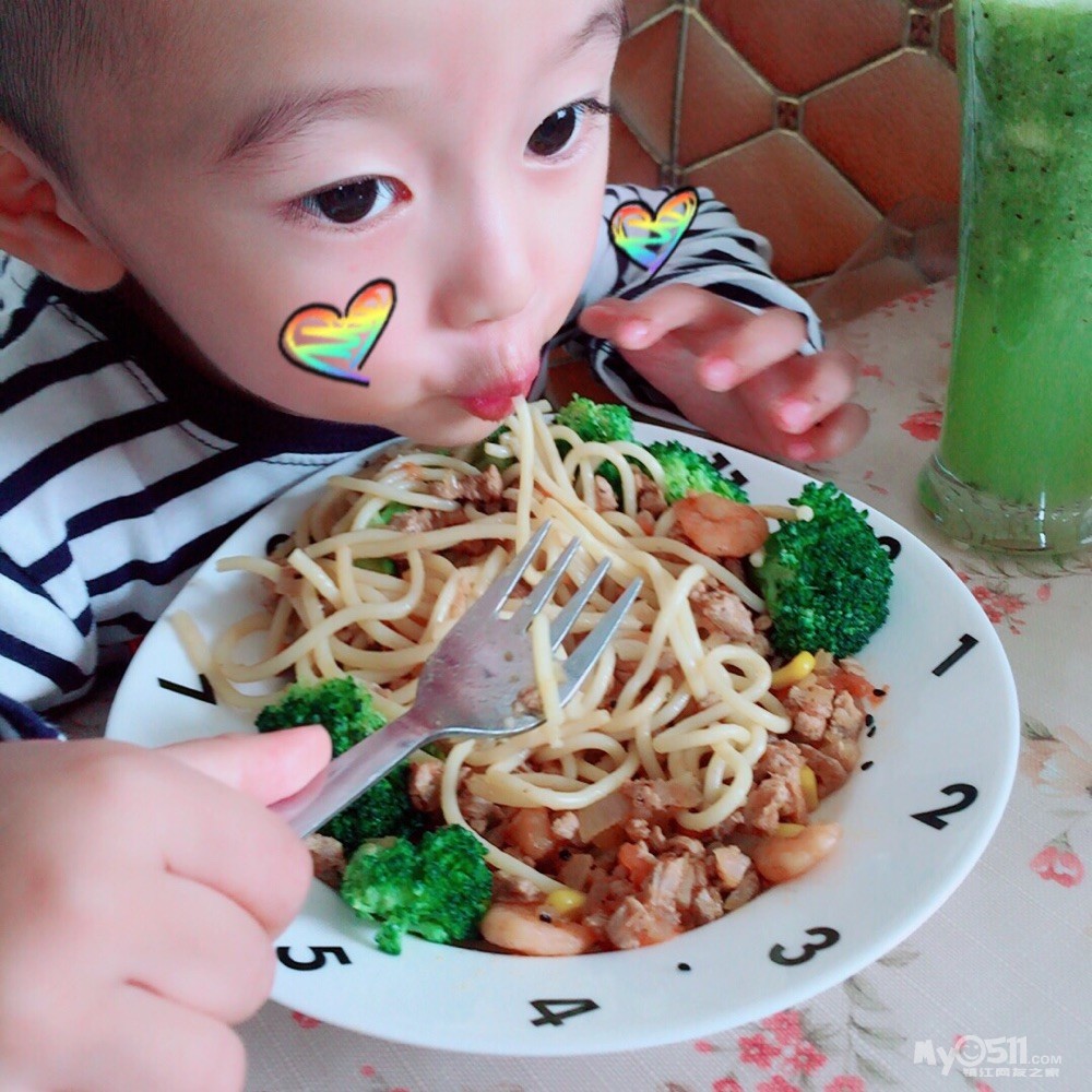 妈妈也是耐心大大的呀面条卷成一小撮一个,不过觉得这样蛮方便的,宝贝用叉子一口一撮,美味又方便呢