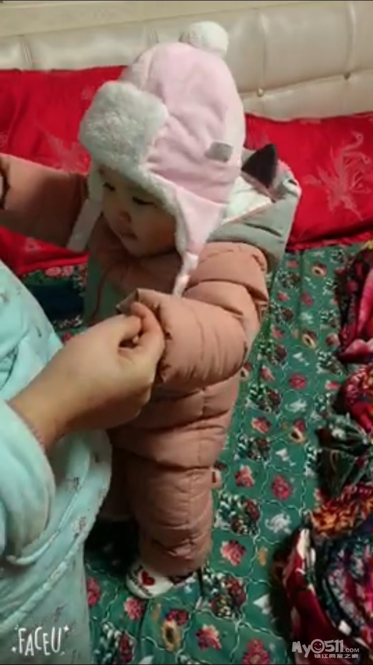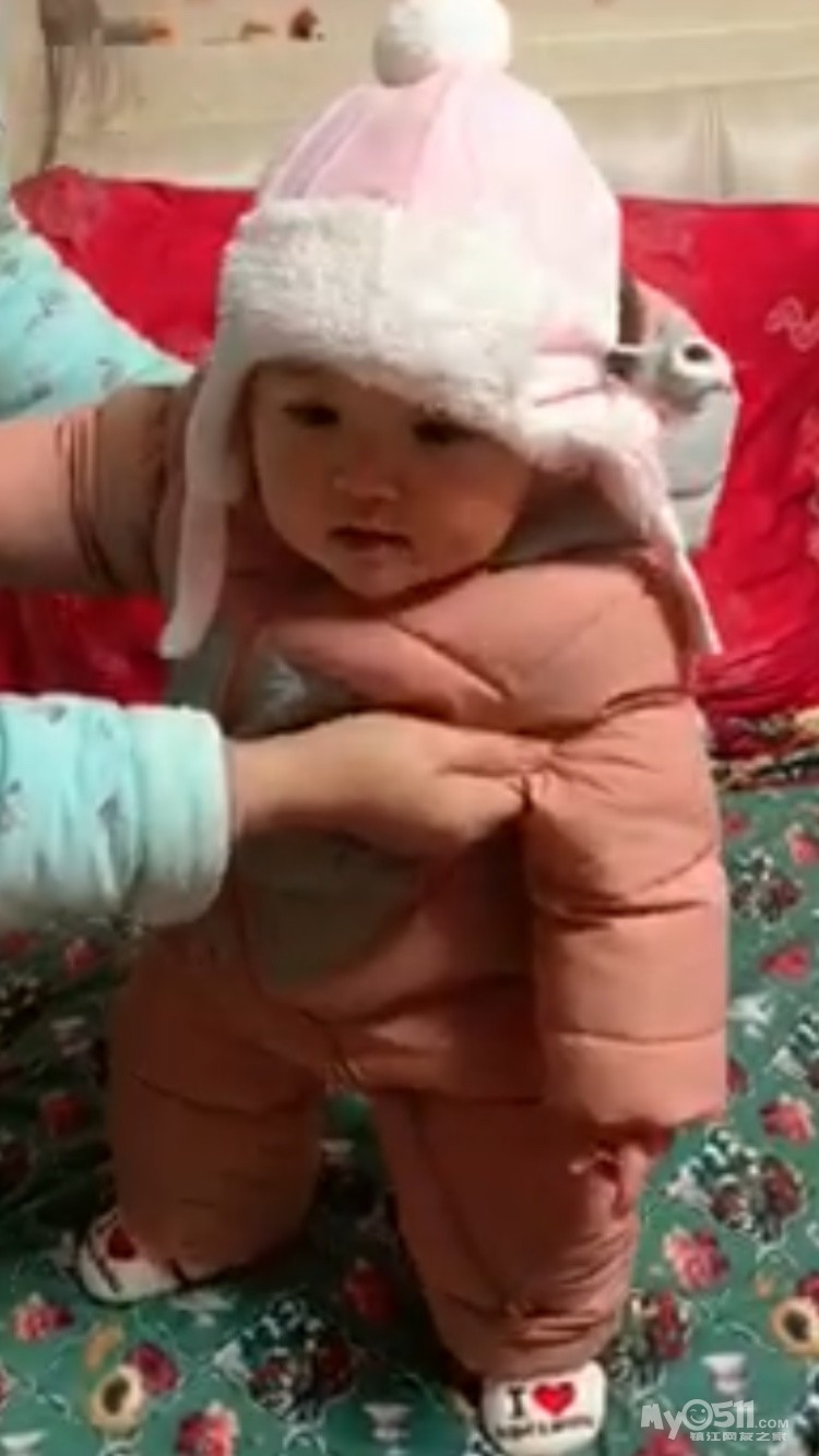 昨天下了第一场雪 温度也越来越越低,其实很早出门就给宝宝早上帽子了,