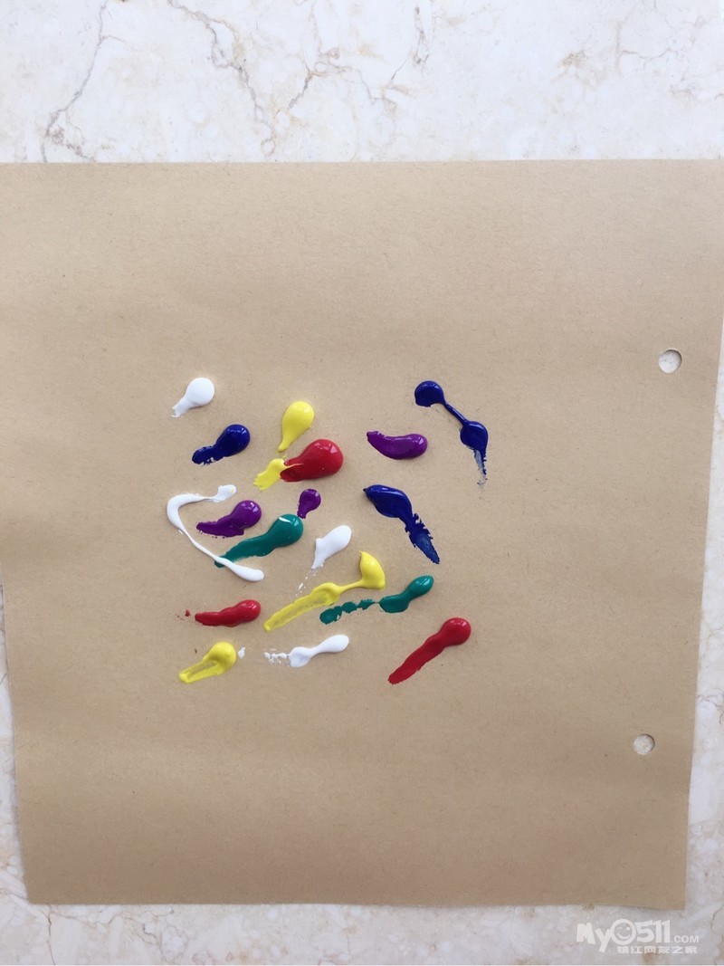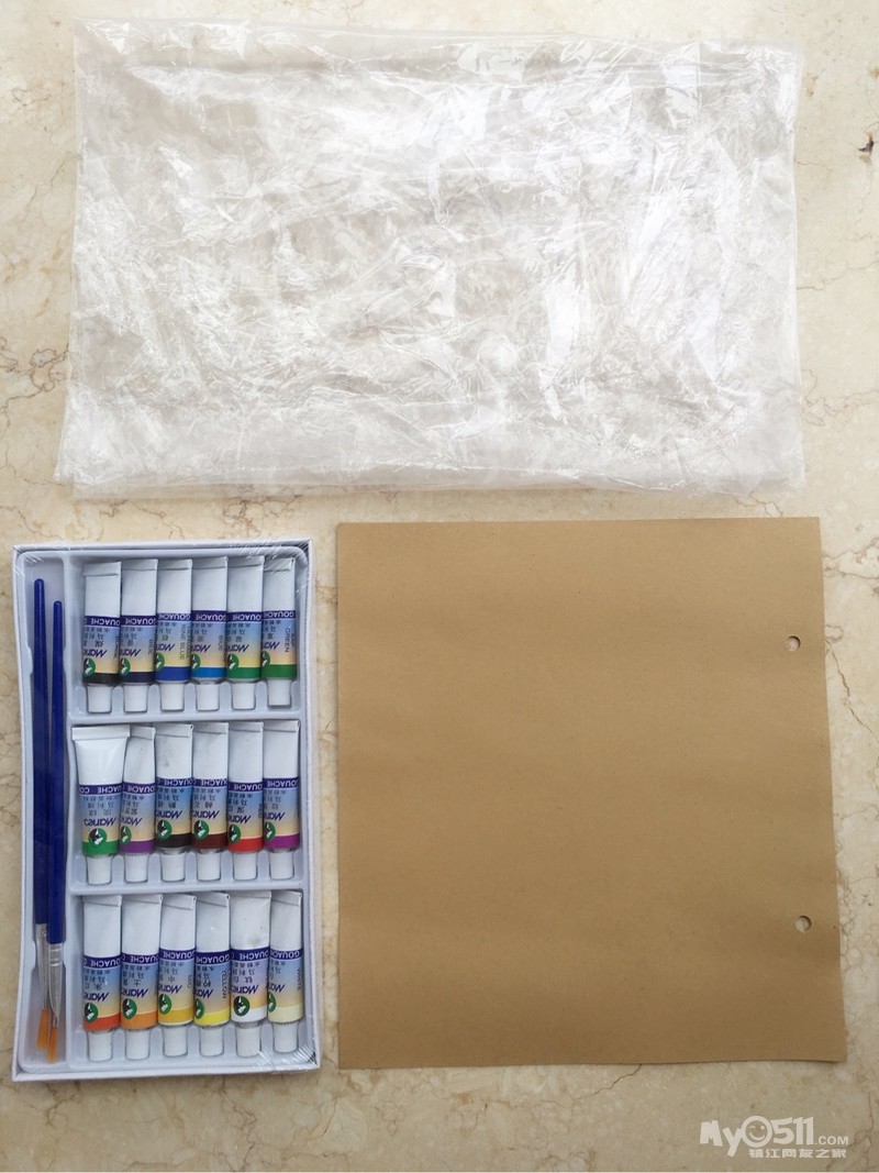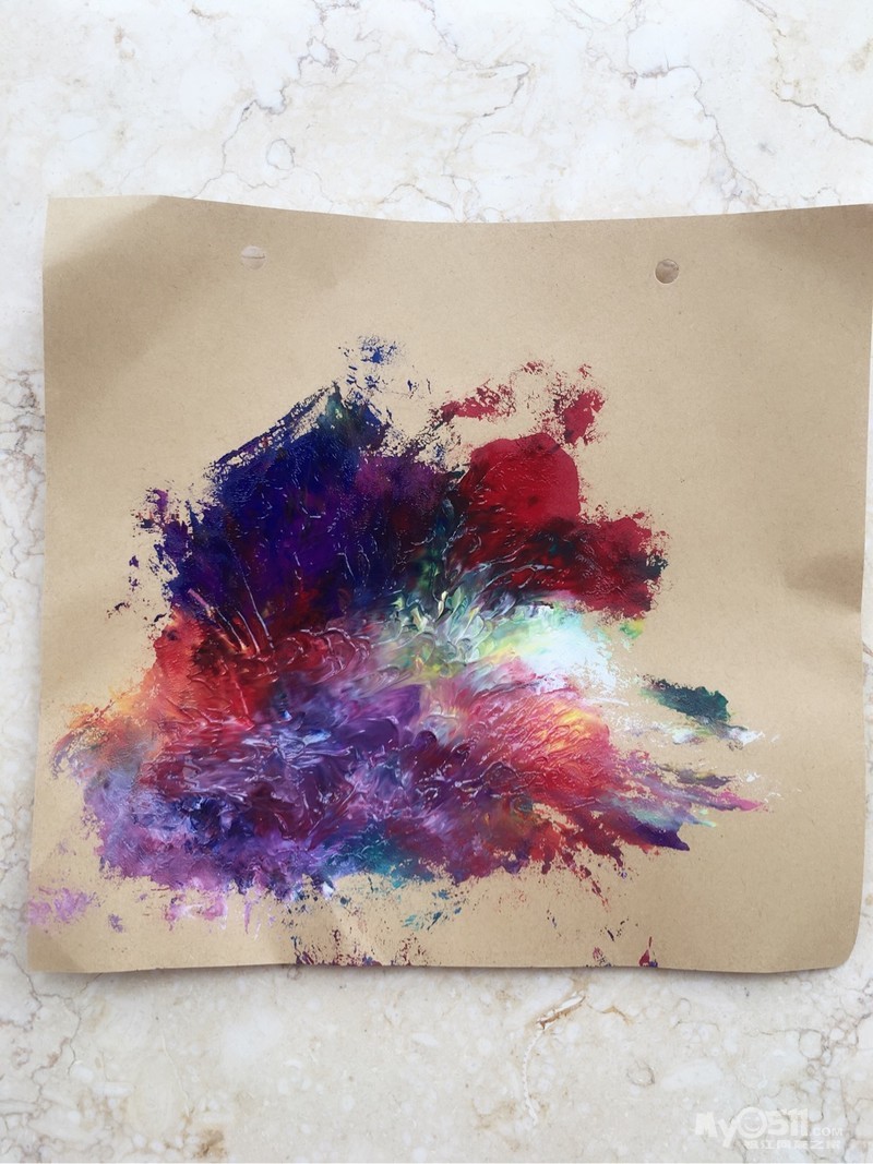 将彩色颜料挤到画纸上,涂好后包上塑料袋(可以多包几层)