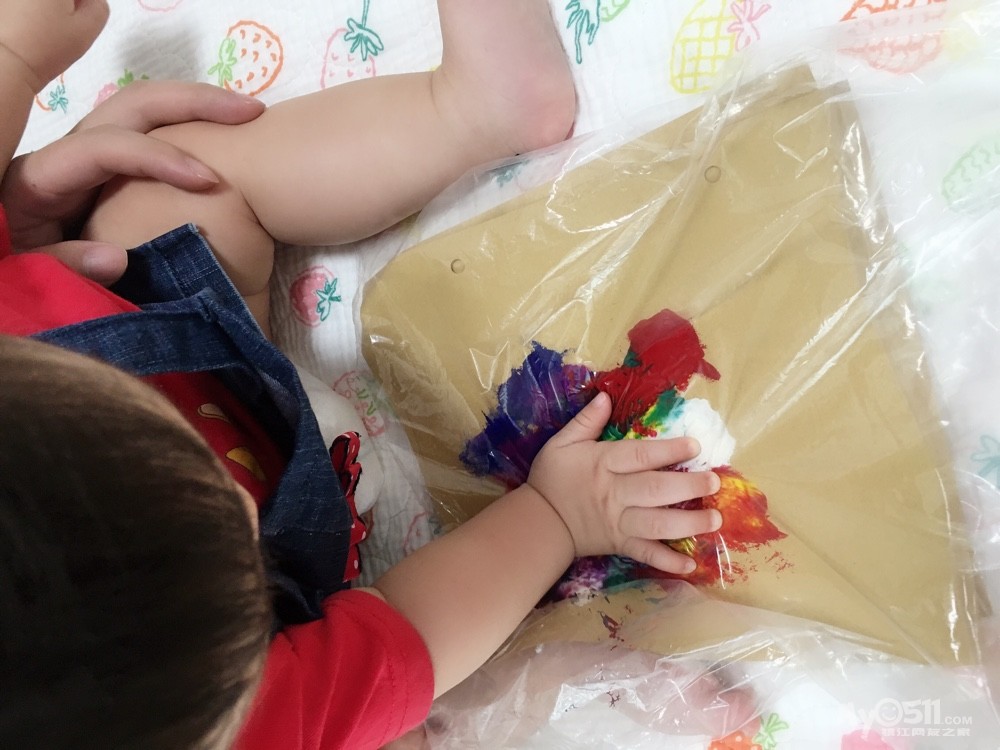 玩的时候可以引导宝宝去拍打和揉捏画纸,小色块会出现千变万化的效果。画好后把塑料袋揭下来等风干,宝宝人生中的第一幅画就诞生了。