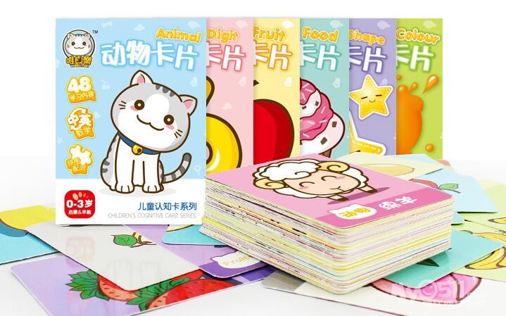 很多人会建议在3个来月的时候就买黑白卡,说实在话,我不是很建议,我感觉她好像也不是很懂。我是在6个月的时候买的,买的是认知类的,认知的话,我建议从动物、数字、形状、颜色、字母。反正我是这样的。一开始我是用这个卡片,当时买了一套动物的,只能说很好用。那会应该是8个月这样,我买回来以后就给我孩子去看,先认5张,主要猫、狗、长颈鹿这样(就是5个辨析度比较高的动物),千万不要拿狮子、老虎和猫,这种同类的,难认。一个晚上桃子就认出来了5张。那会还不会怎么说话的,只会发baba和mama音,还有yiyiyaya那种,主要认知靠点。就是我先告诉她这是猫,这是狗。。。然后问她哪一个是猫,哪一个是狗,这种认知。第二天再重复一次,后面再慢慢增加,我记得当时最多一周就把48张卡都认完了。是后面随便说都能点出来的那种。。