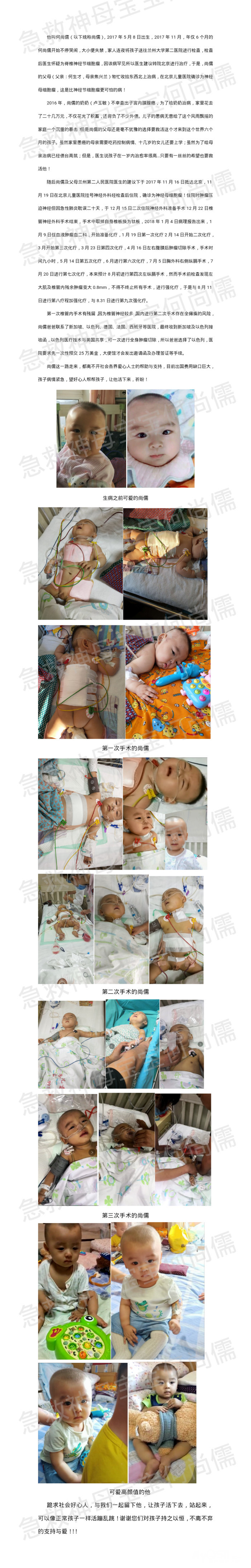 你好,我们是守护尚儒宝贝的爱心妈妈,想请您帮助尚儒宝贝宣传一下,请大家都献出一点爱心,帮帮我们这个抗癌小勇士!!