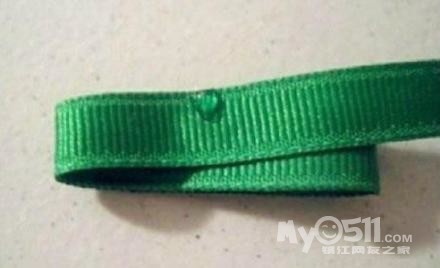 把绿色绸带折一折,用胶水固定。