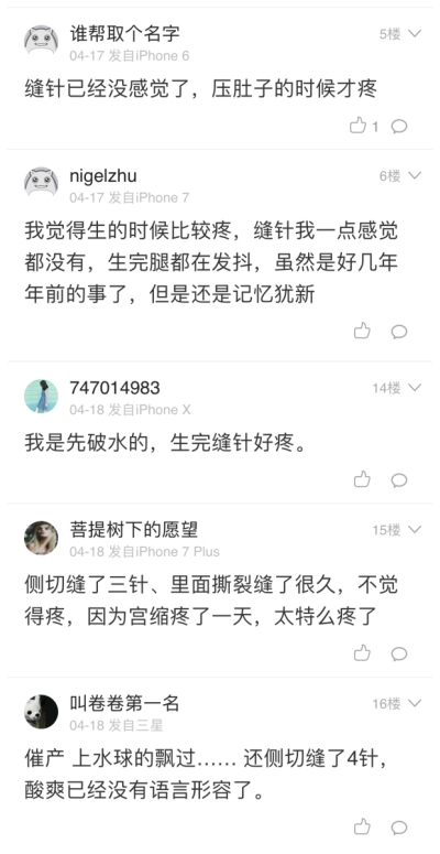 通篇文章,看到最多的字就是疼,宫缩疼,缝针疼...