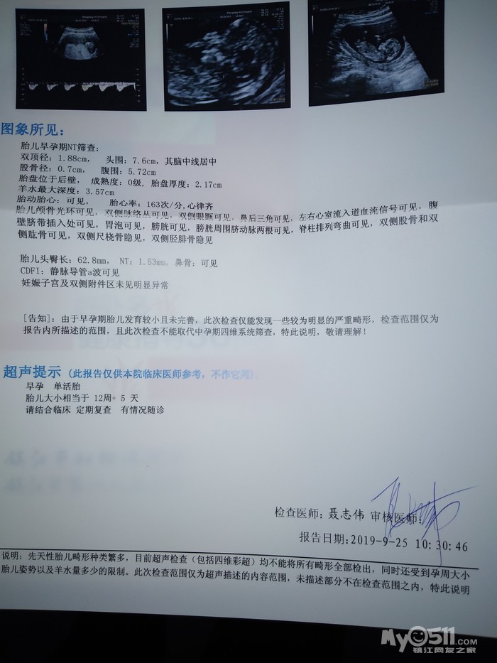 前期经过保胎、打孕酮针再到Nt检查,当看到B超单时,觉得一切的付出、等待都是值得的!一个身体中,有2个心跳在跳跃中,是幸福的!