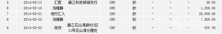 ^2014-08-28 ^汇款 ^镇江东门支行 ^CHN ^钞 ^- ^- ^- ^70.00 ^ ^人民币 ^17,293.76