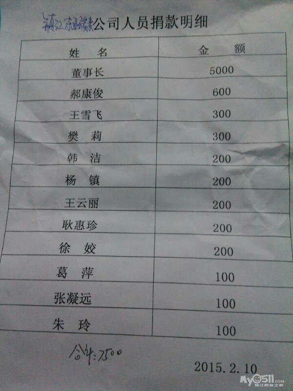 还有我们团队的小孙也捐了100