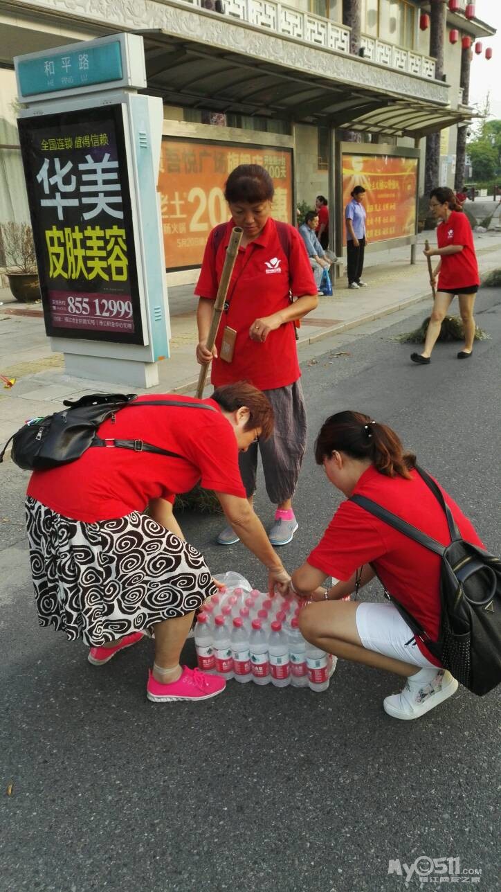 2017年8月5日“爱心家园”的志愿者们带着宝塔路小学的小朋友,凌晨四点多钟就来到镇江市第六中学门口,今天活动主题:体验环卫工作、慰问炎炎夏日冒着40多度高温坚守岗位,为文明镇江城、大爱镇江城默默无私奉献的卫工人们。