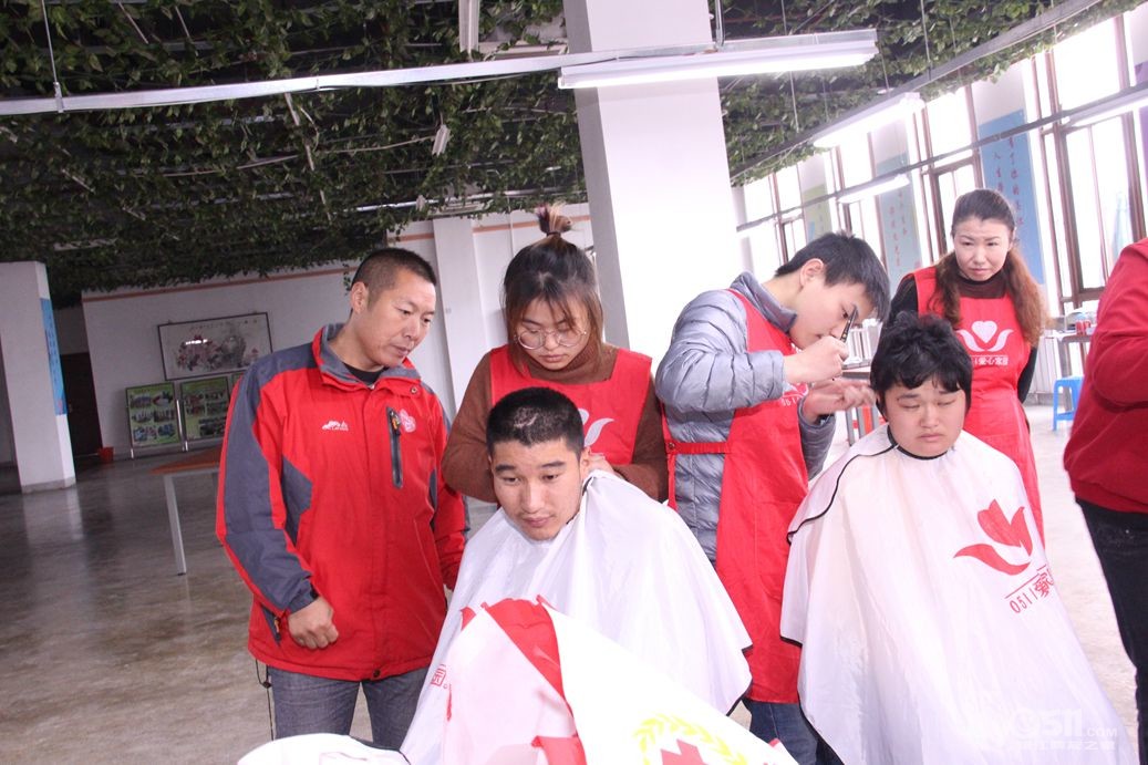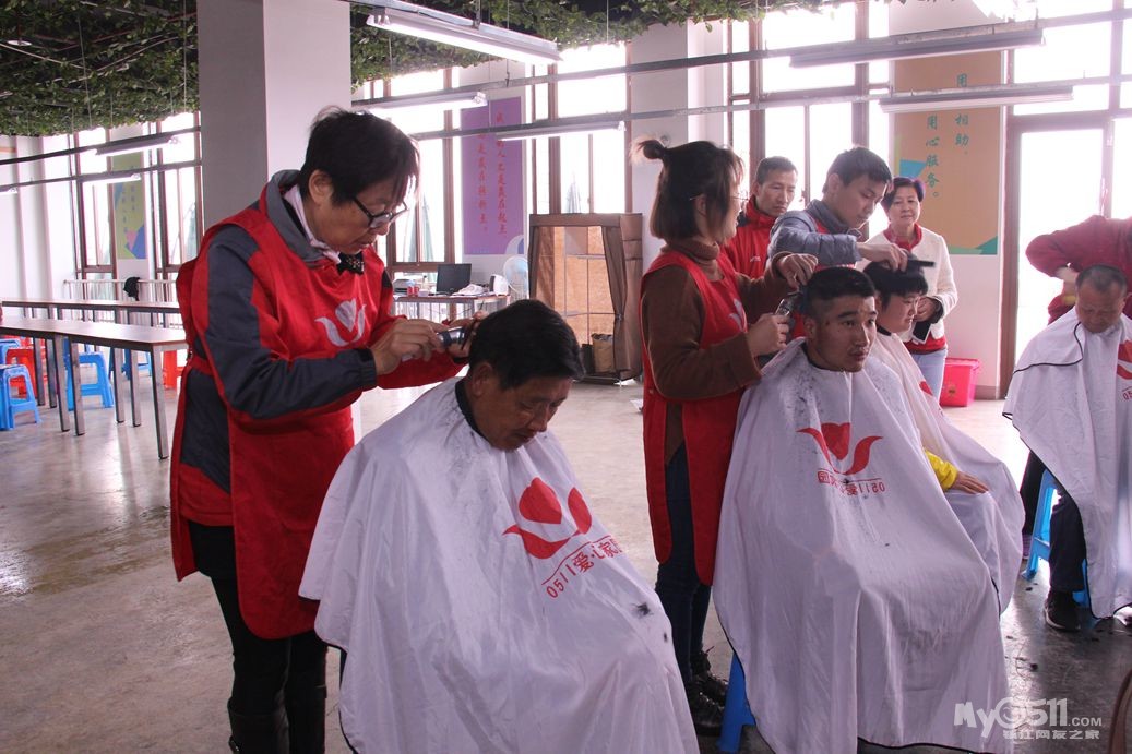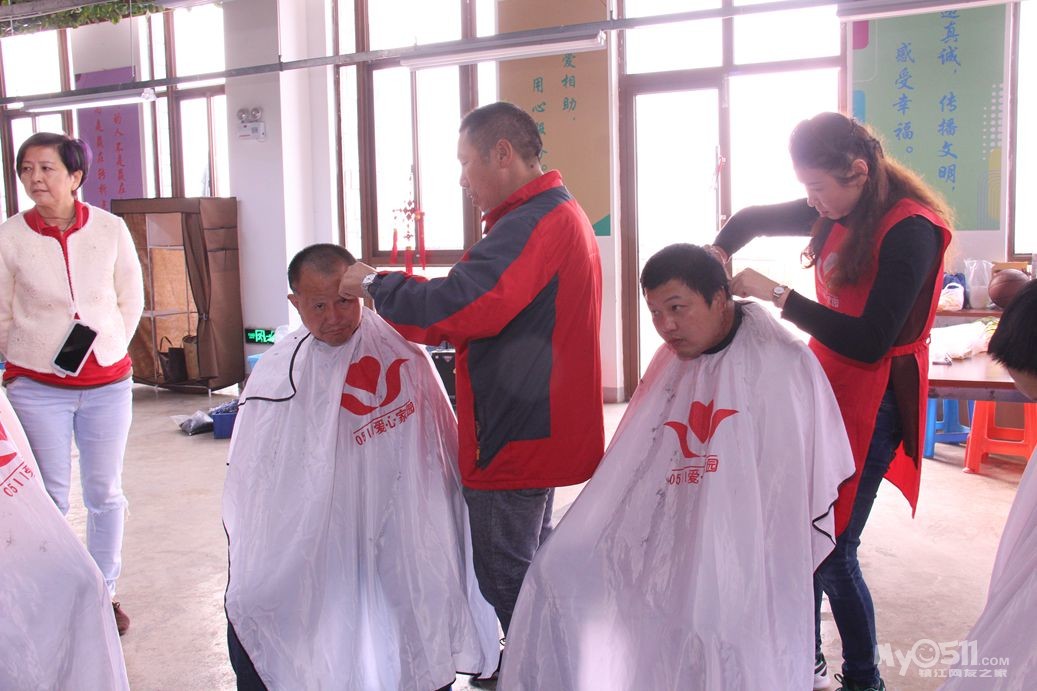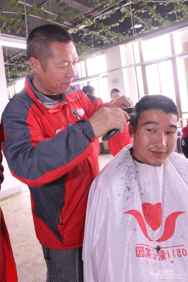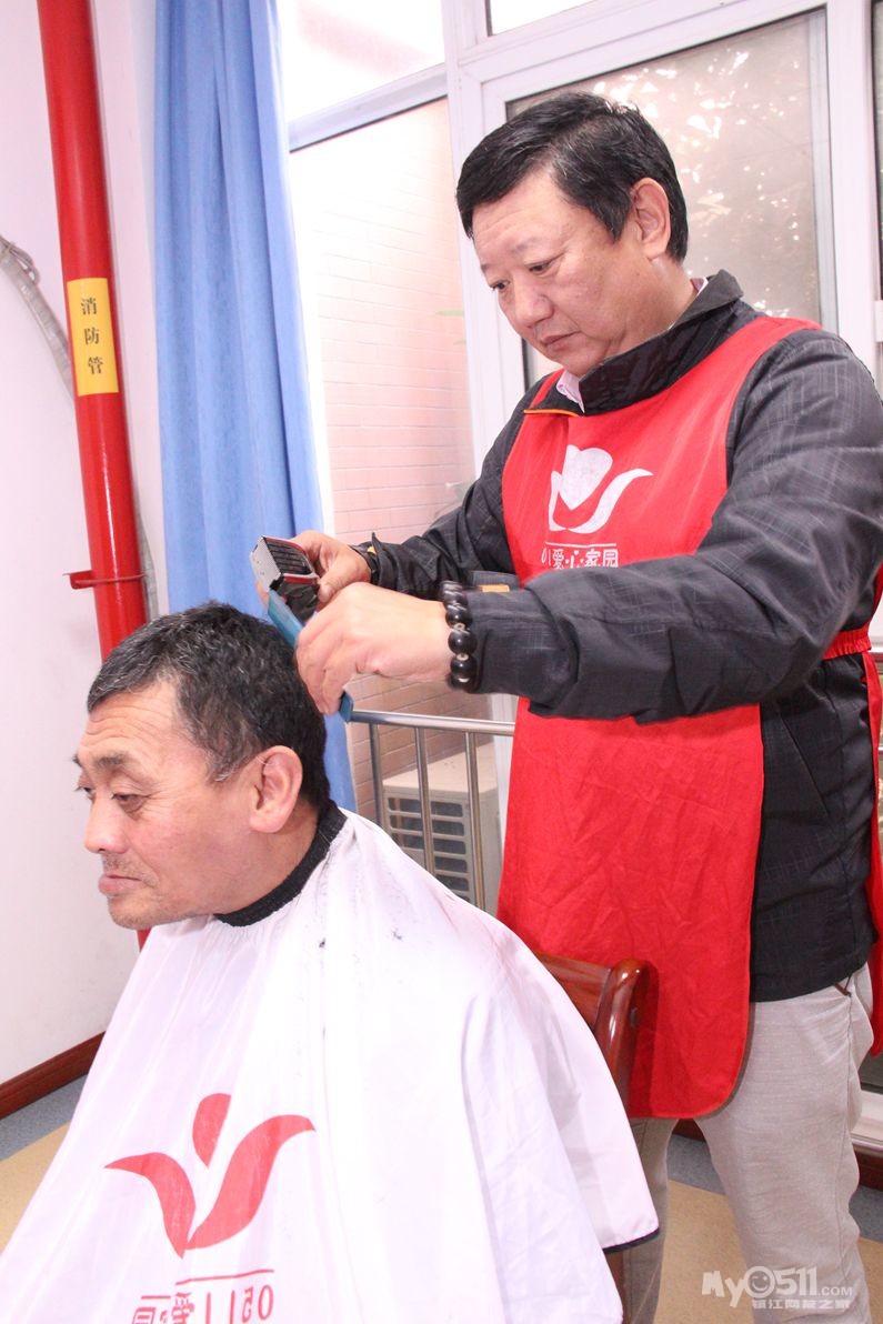 今天上午红色园服志愿者,到托养中心和冠城敬老院为孤老和残疾人理发!