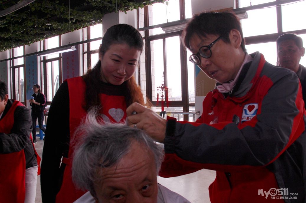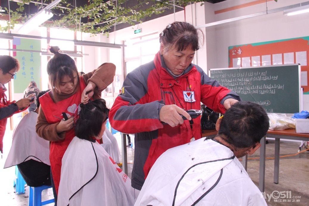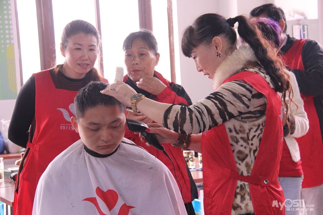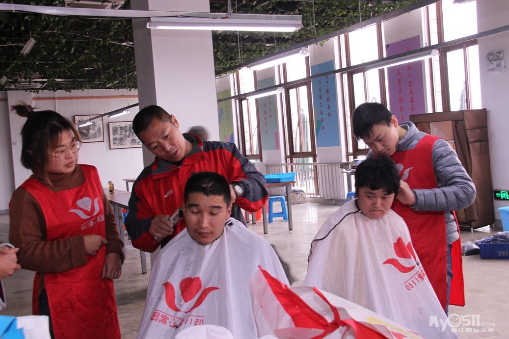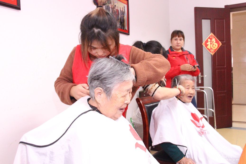 今天上午红色园服志愿者,到托养中心和冠城敬老院为孤老和残疾人理发!