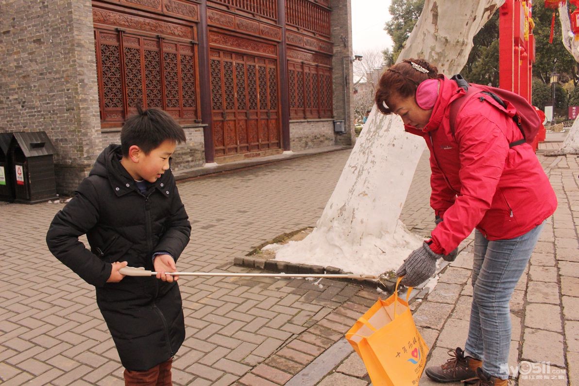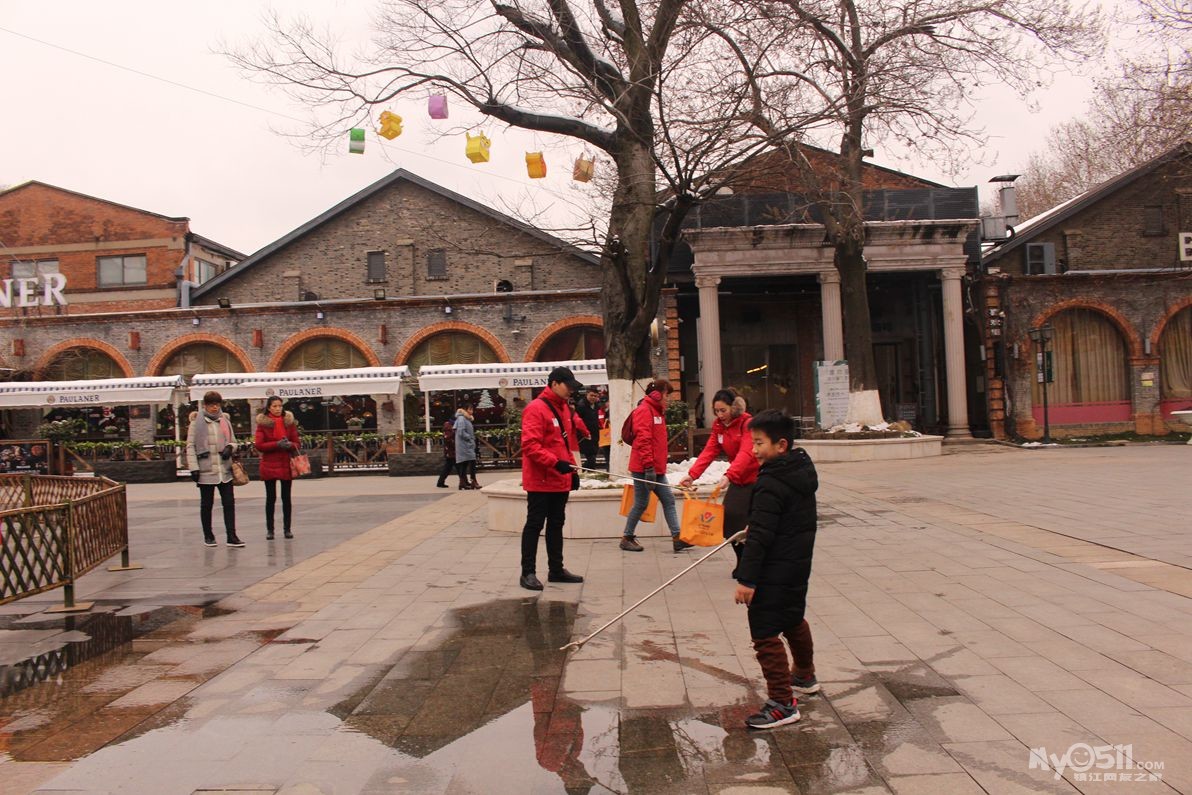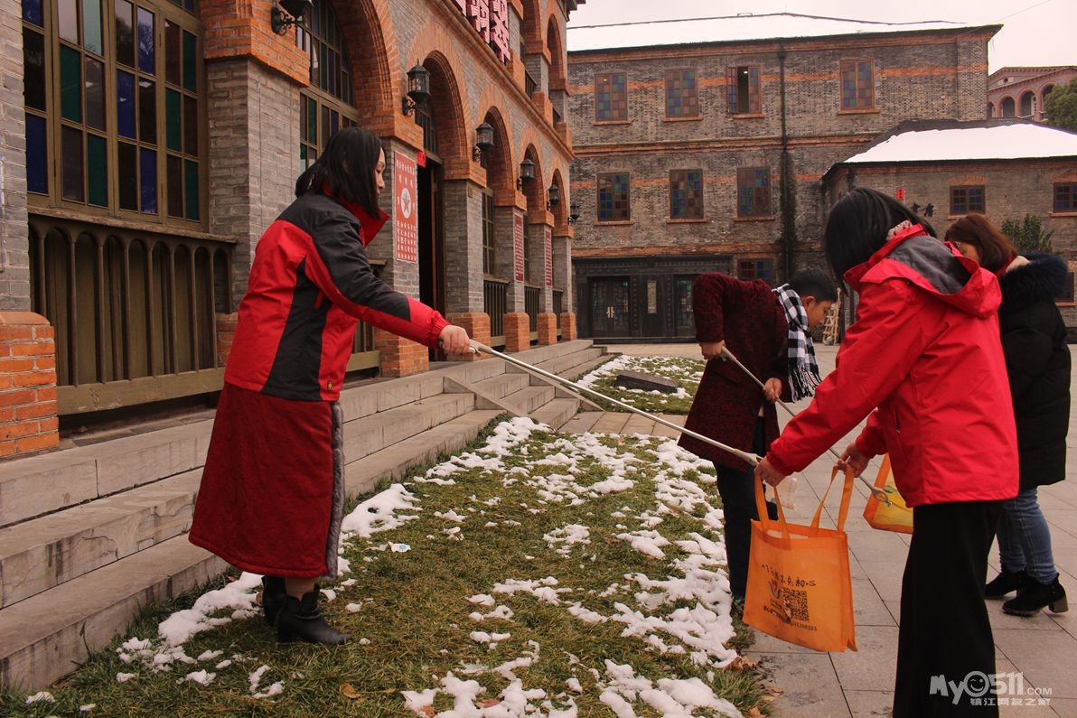 春节长假接近尾声,残雪还未融进,寒气让人瑟瑟发抖,风吹的脸上像针扎一样!家园志愿者,依然坚持在为西津渡景区环境卫生,为游客文明引导!岗位上,地面上被雪水淋的湿漉漉的地面的垃圾捡不起来!志愿者就用手一点一点抠出来!保持景区卫生清洁!