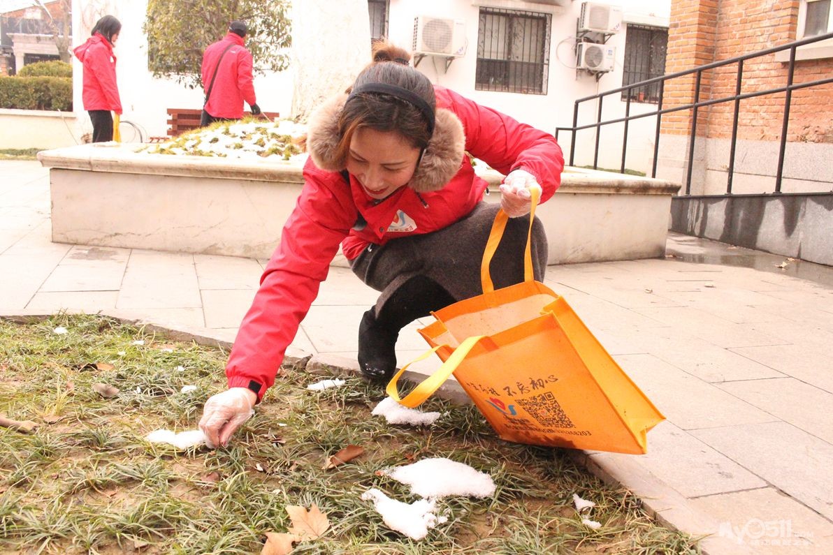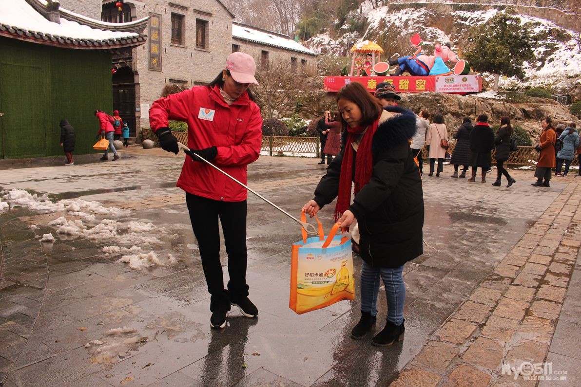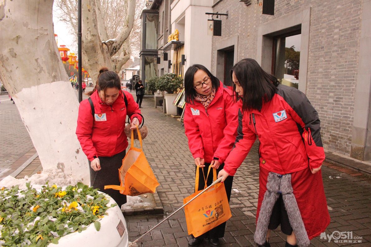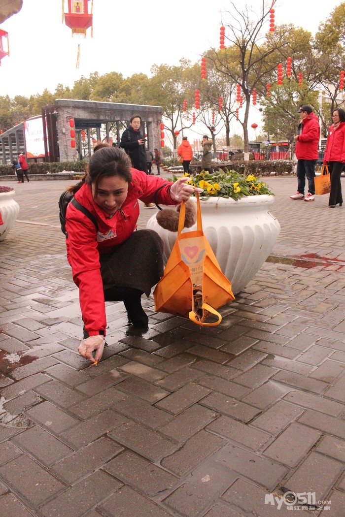 春节长假接近尾声,残雪还未融进,寒气让人瑟瑟发抖,风吹的脸上像针扎一样!家园志愿者,依然坚持在为西津渡景区环境卫生,为游客文明引导!岗位上,地面上被雪水淋的湿漉漉的地面的垃圾捡不起来!志愿者就用手一点一点抠出来!保持景区卫生清洁!