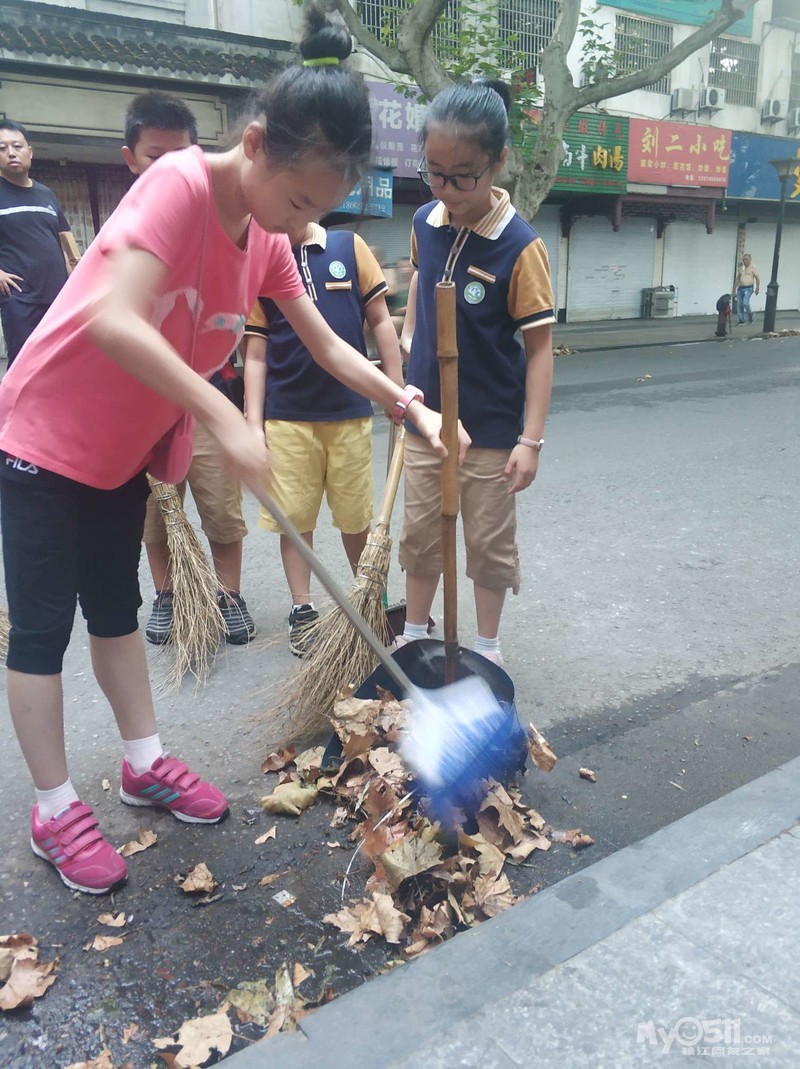 我是怎么体验的呢?我像环卫工人一样拿着簸箕,笤帚,扫路边的落叶还有臭水,我觉得自己闻着味道都要吐了!但我们还是一直坚持跟着一位环卫工人,一起扫地……扫地好辛苦啊,我的手,腿都疼了!