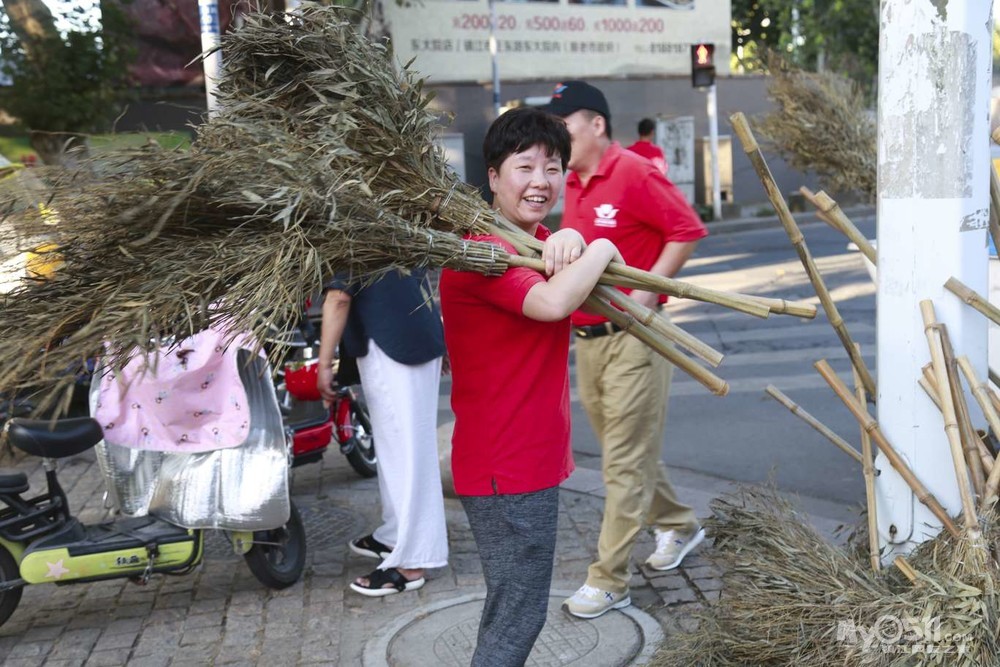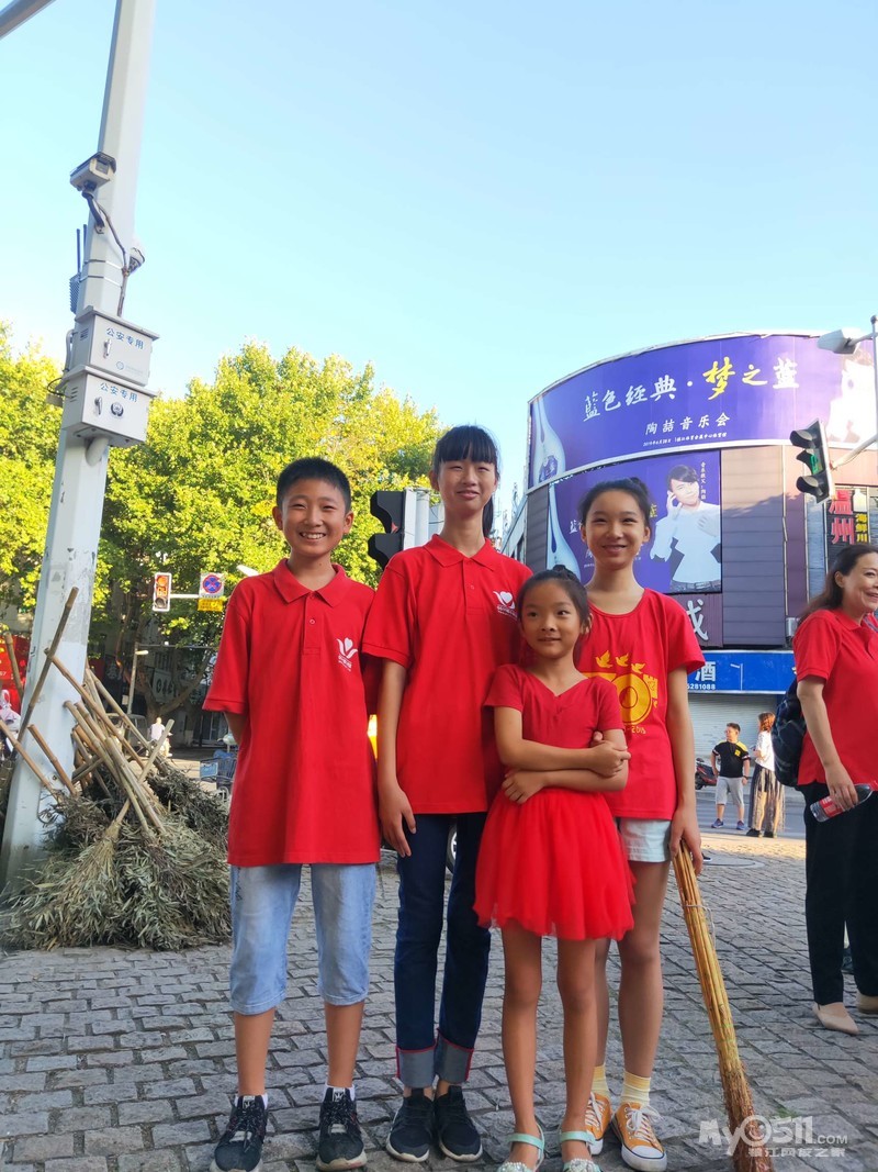 一路上,天还没太亮! 一个小店都没有开门。半个小时后,我们就到了。 已经有很多人了!都已经没有大扫把了,但幸好我们自己带了一个扫把 。