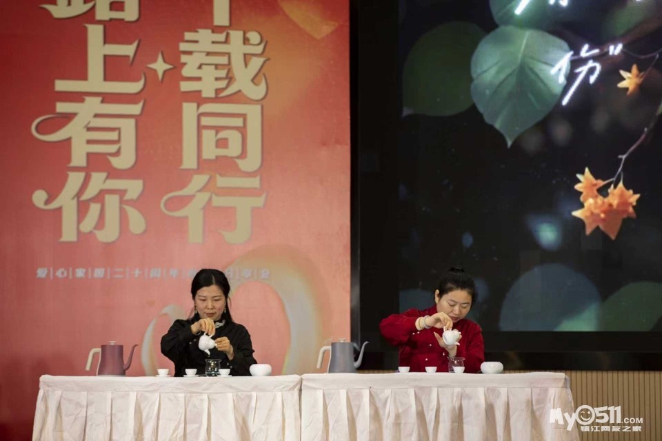随后,一场兼具温情与力量的才艺展演及分享环节轮番上演,将现场氛围推向高潮。在老师的悉心带领下,镇江市特教中心学员们带来了诗词小课堂节目,孩子们深情朗诵经典古诗,以纯粹真挚的姿态诠释着自强不息的生命力量,每一句吟诵、每一个神情都饱含热爱与坚守;残障学员与志愿者联袂呈现的茶艺表演《萱草花》惊艳亮相,被称作“小茶花”的残障学员动作娴熟优雅,在茶香袅袅中绽放生命光彩,尽显多年公益赋能的丰硕成果,每一个细节都承载着双向奔赴的爱意,引得现场掌声经久不息。