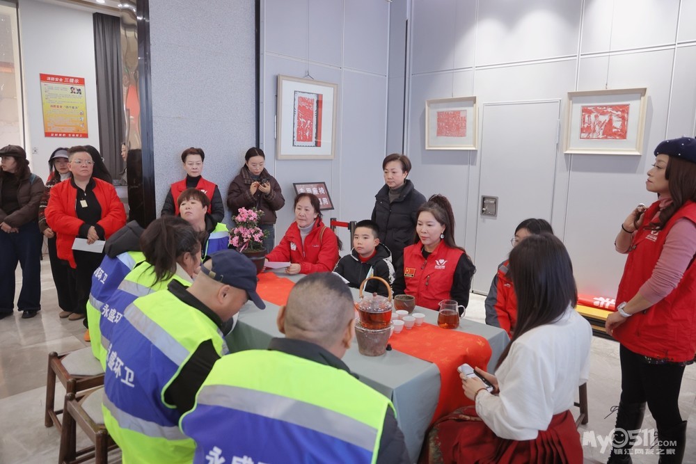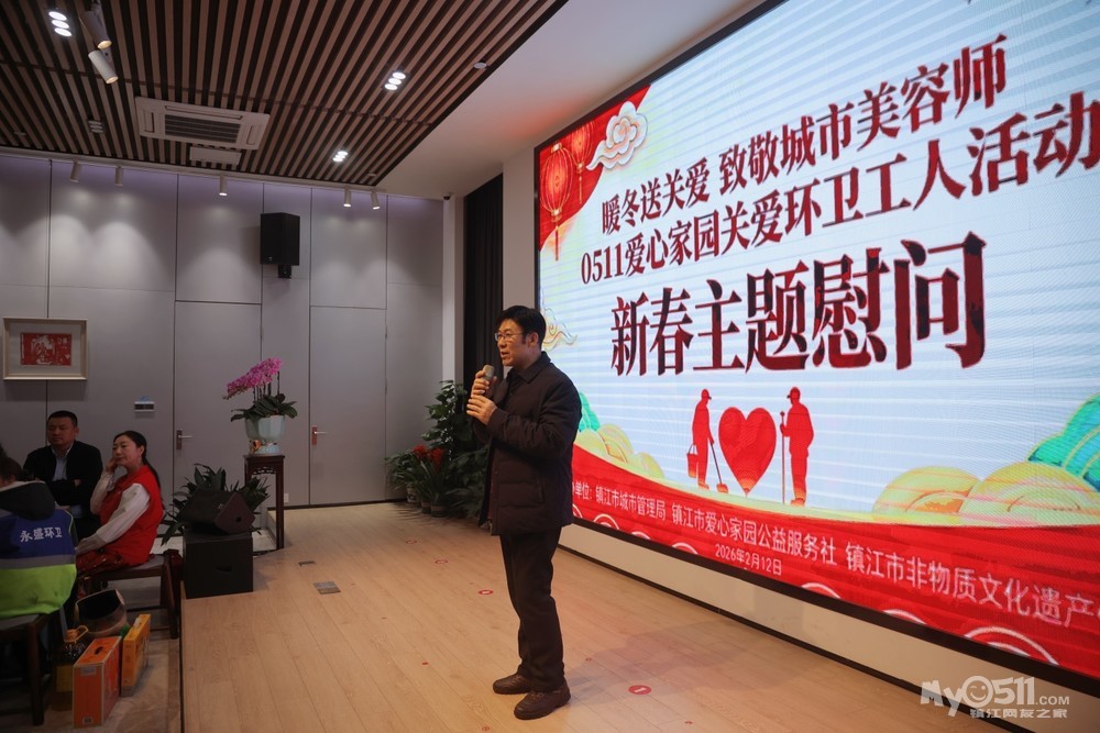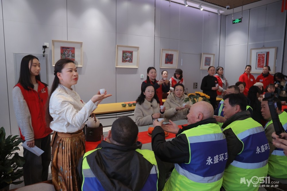 2026年2月12日下午,西津渡民间艺术馆内暖意融融、茶香四溢。由镇江市爱心家园公益服务社、镇江市非物质文化遗产保护中心联合主办的“暖冬送关爱,致敬城市美容师”关爱环卫工人年终慰问活动在这里温情举行。20位一线环卫工人代表、爱心志愿者及社会各界人士约60人齐聚一堂,在浓浓年味中感受来自社会的敬意与温暖。