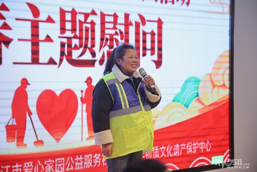 下午2时,活动在主持人许花的温情开场中拉开序幕。爱心家园代表仪人以《十六年温暖相伴》为题,深情回顾了0511爱心家园与环卫工人相伴十六载的公益历程。自2010年“体验环卫生活”活动启动以来,志愿者与环卫工人的情谊从未间断:2011年捐赠60台电视机,2012年发起环卫工子女助学行动,2015年起每年夏季送水蜜桃与防暑物资、冬季送慰问金与生活用品……十六年寒来暑往,这份“季节性牵挂”早已成为城市文明的一道温暖风景。