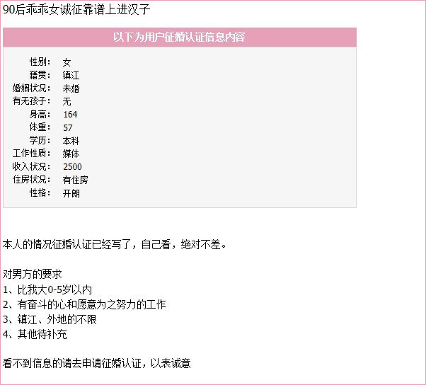 更可以关注“花嫁镇江”微信号,不定期推送优秀男女交友信息,或加小编微信my0511qt