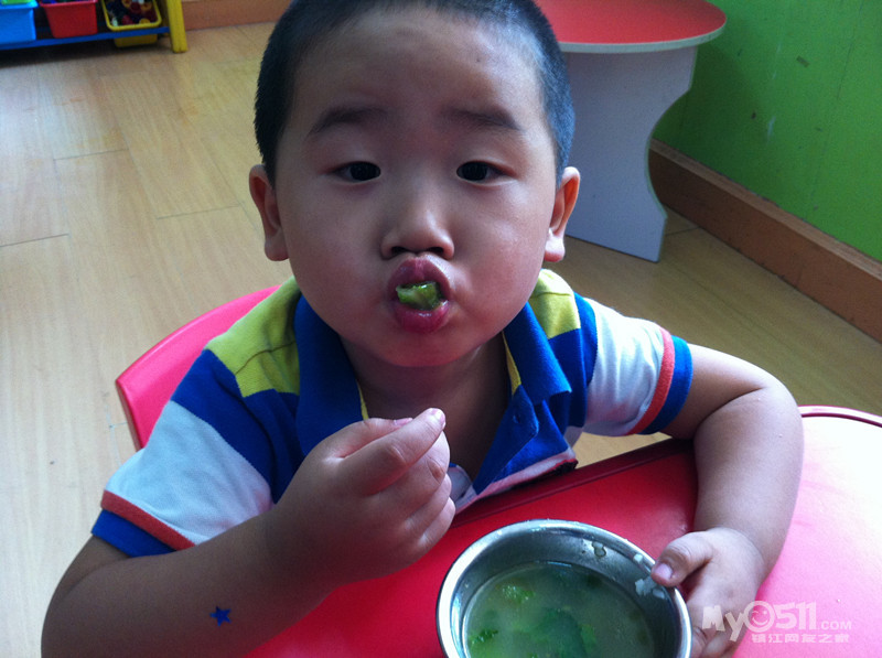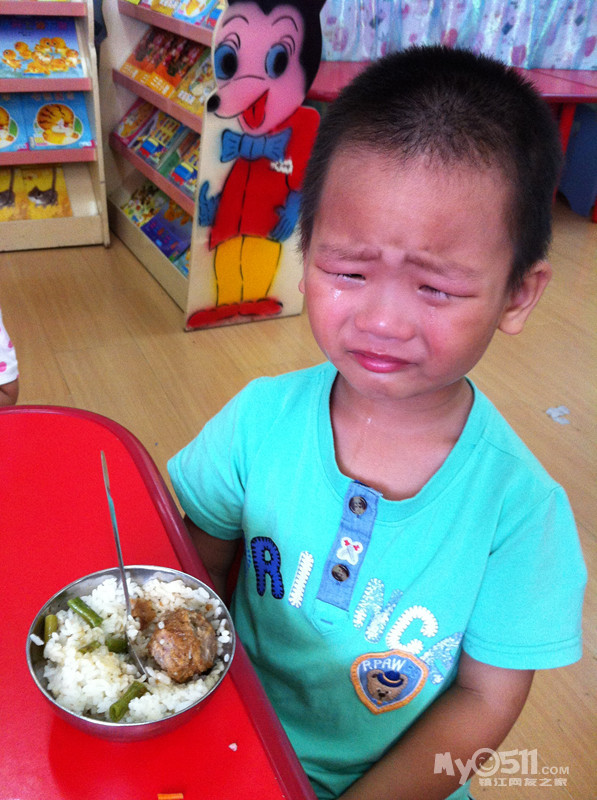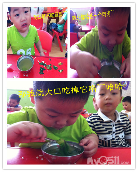 看到周业涵吃饭照片,问他为什么其他小朋友都吃完了,为什么他不吃还哭,他回我说,他不吃青菜,不想吃饭,平时在家吃饭就不好好吃,蔬菜基本不肯吃