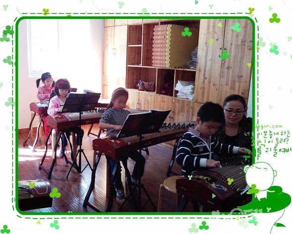 幼儿园针对大班幼儿开设乐器教学活动:幼儿古筝启蒙、幼儿电子琴启蒙。