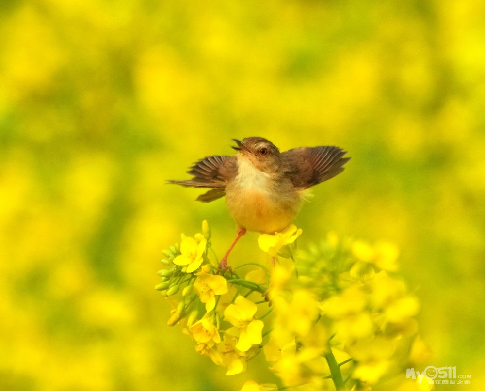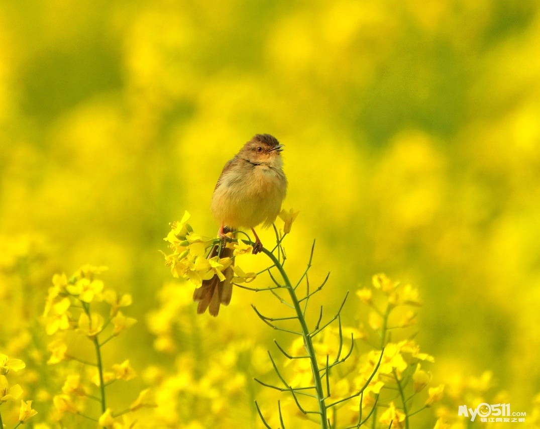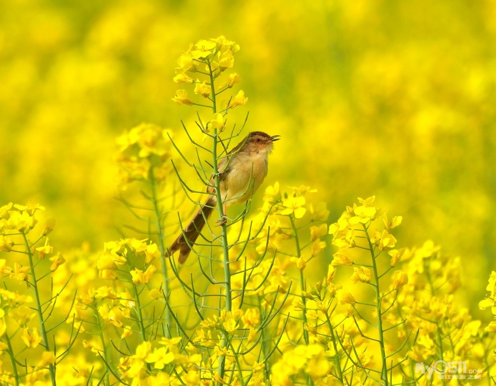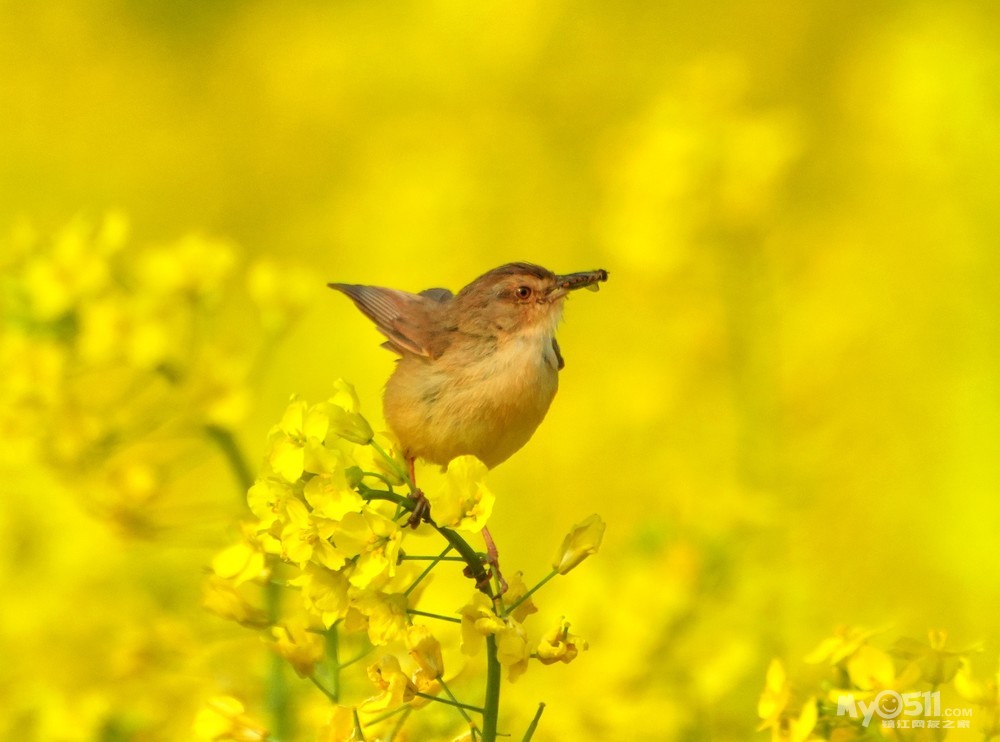 油菜花上的绝色山鹪莺
