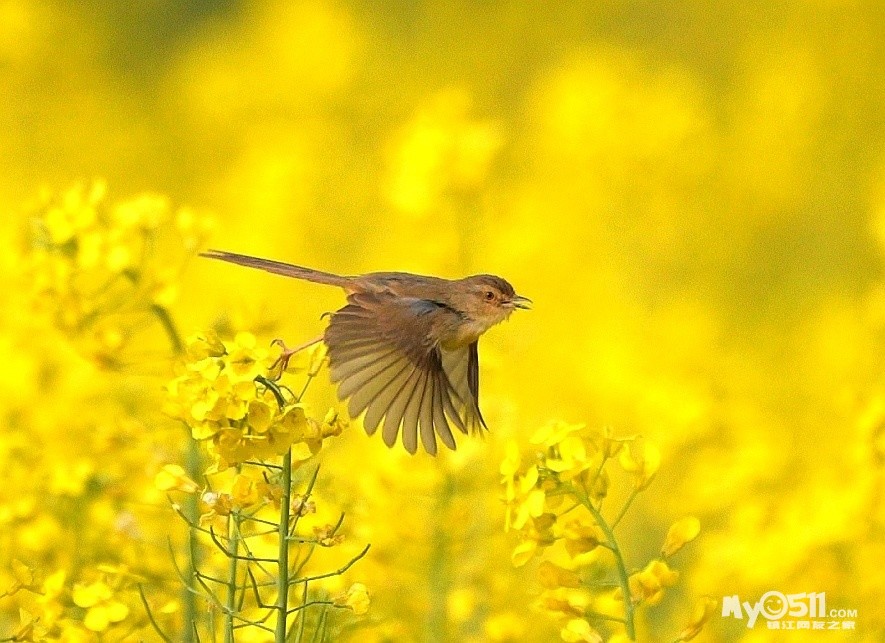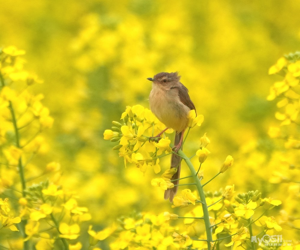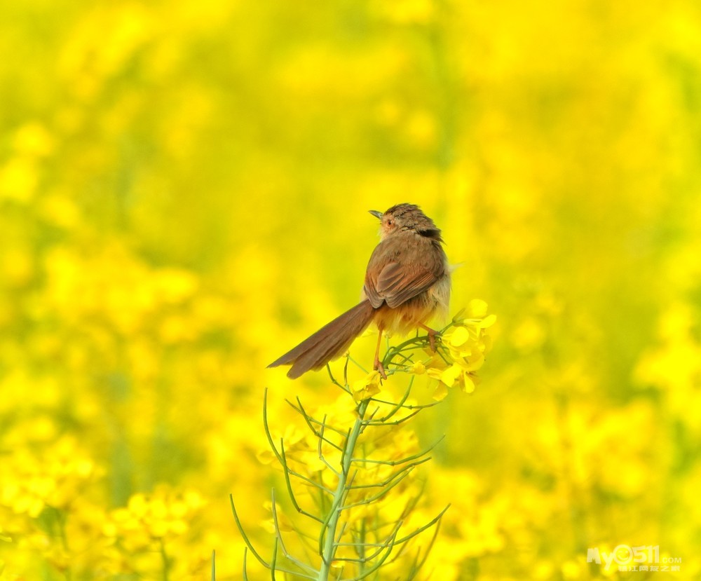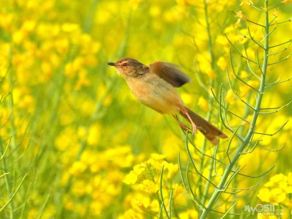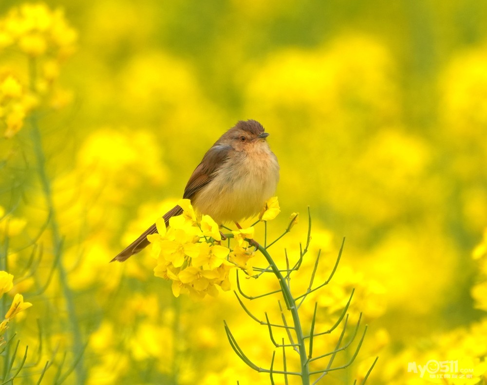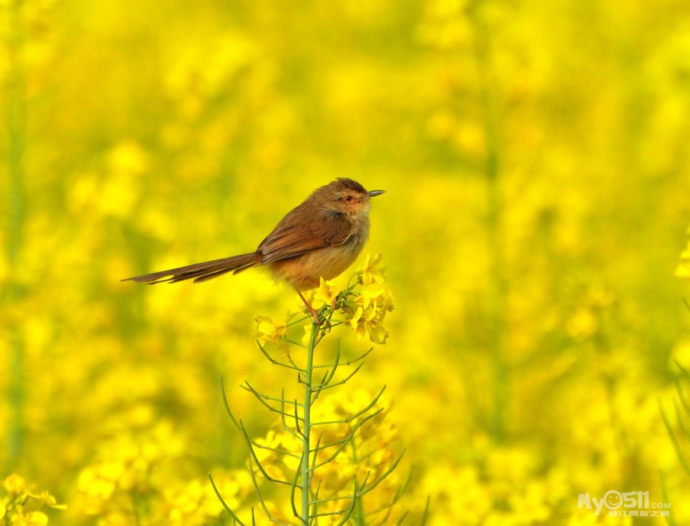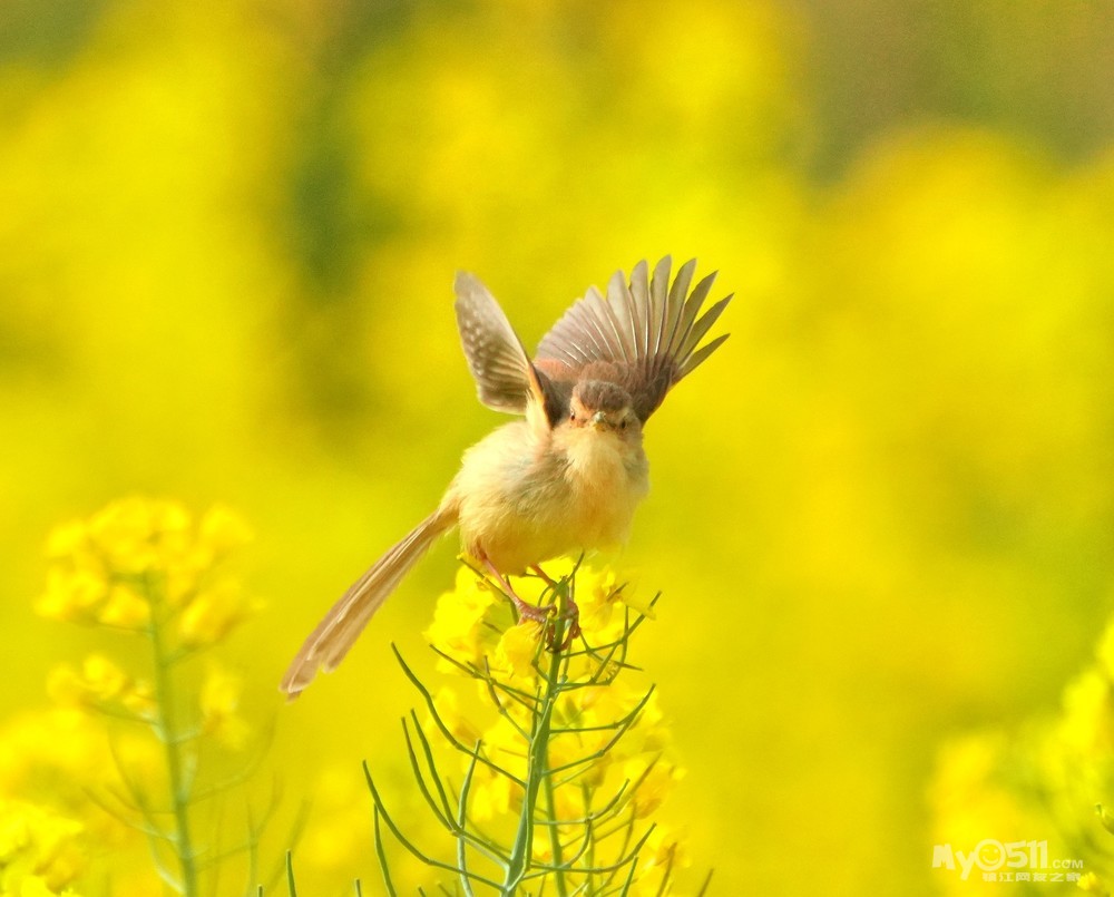 > 油菜花上的绝色山鹪莺