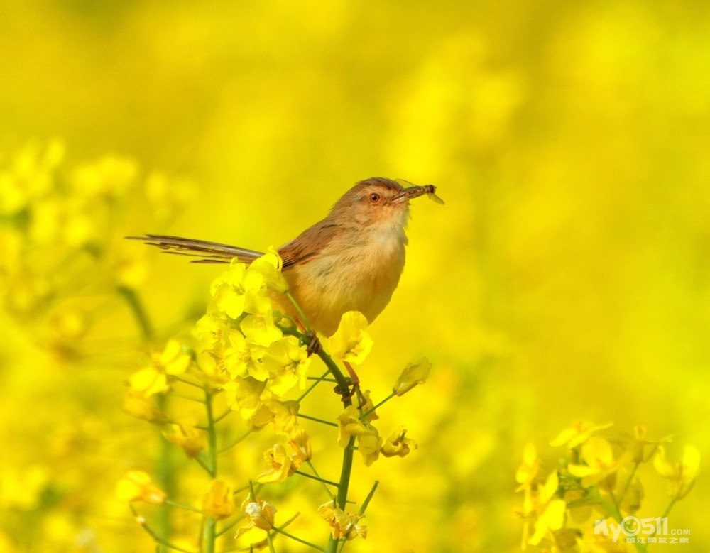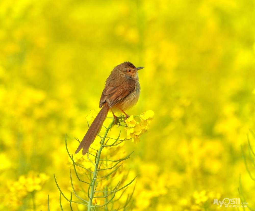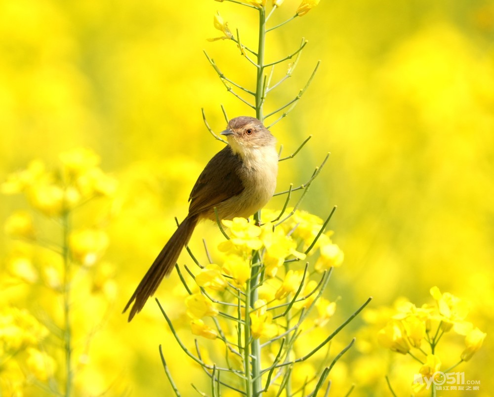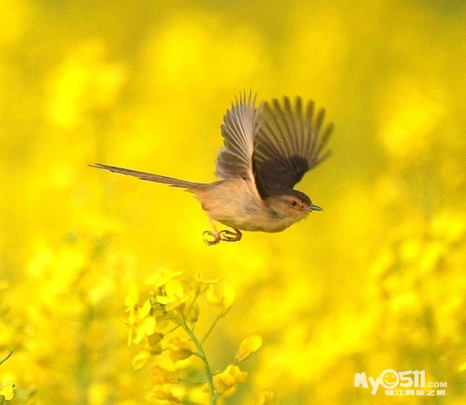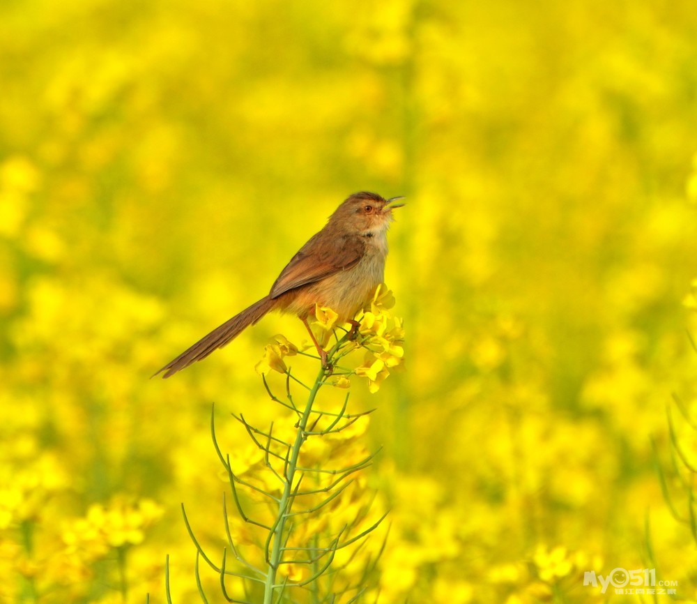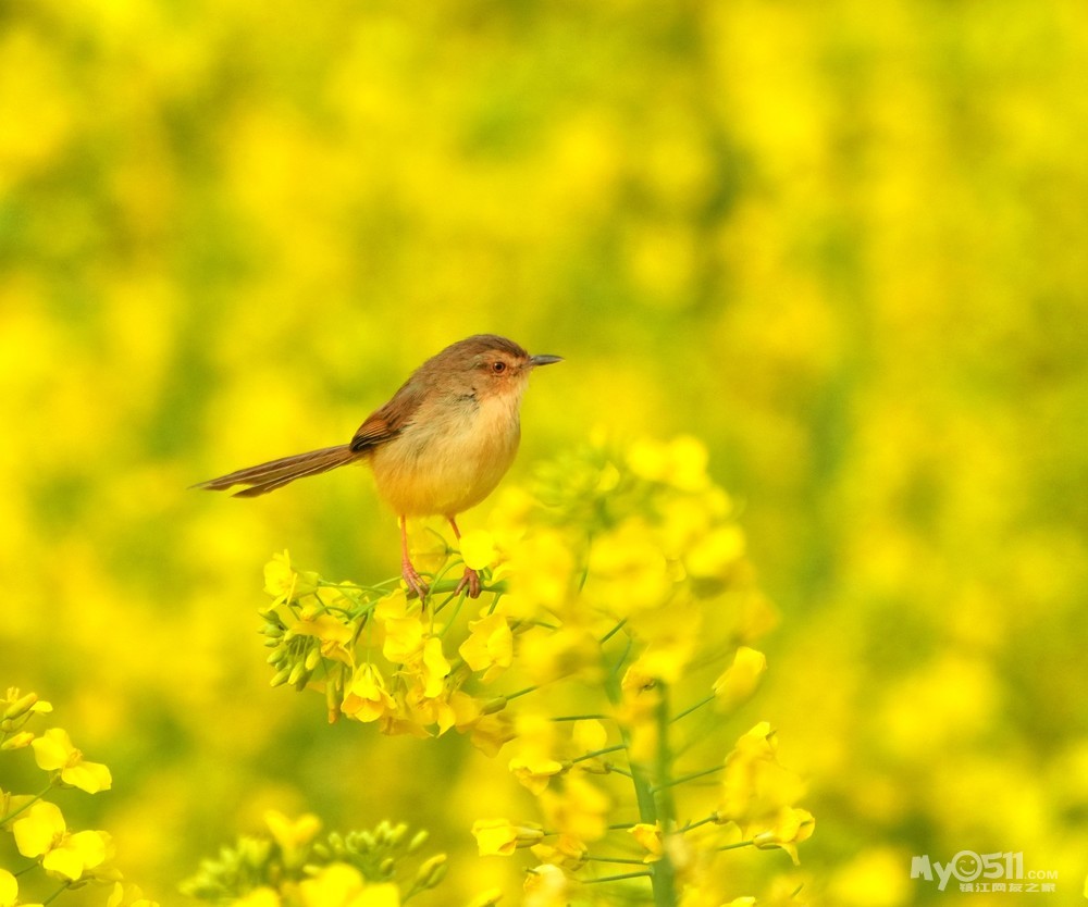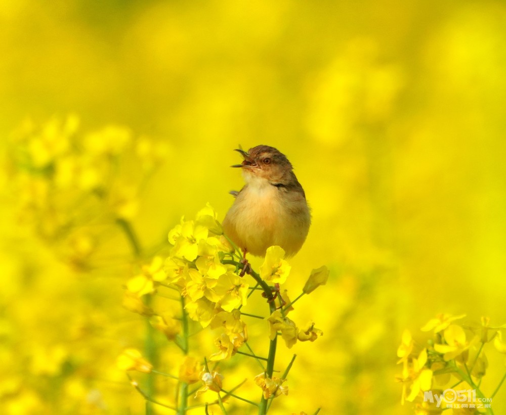 > 油菜花上的绝色山鹪莺