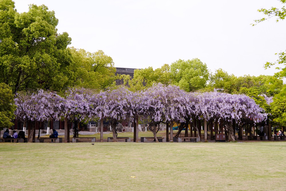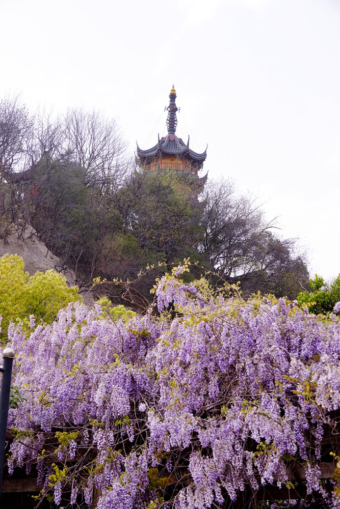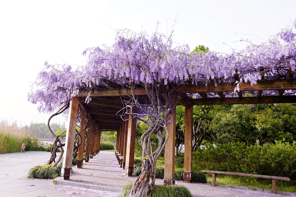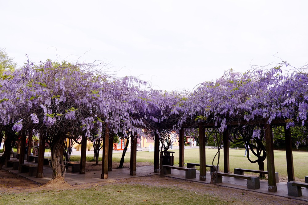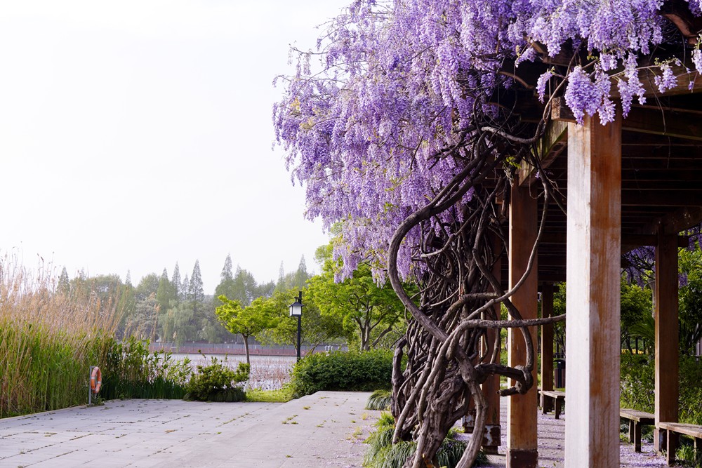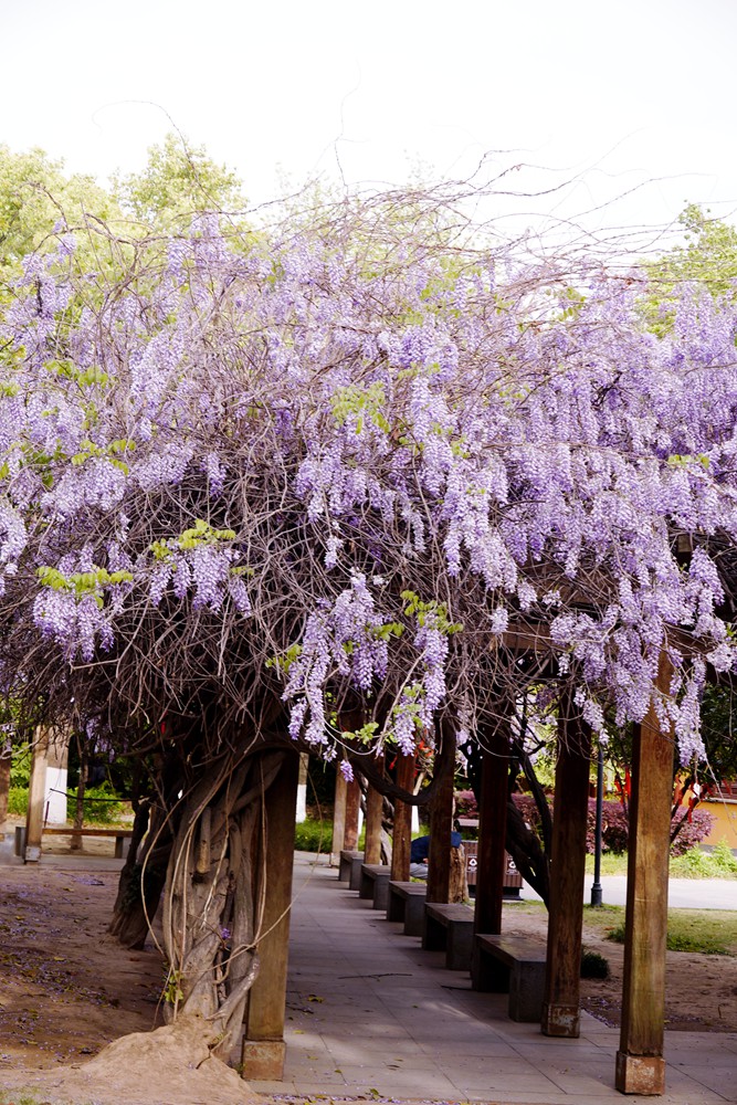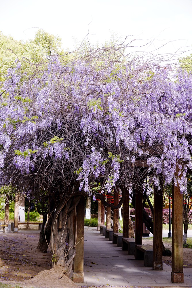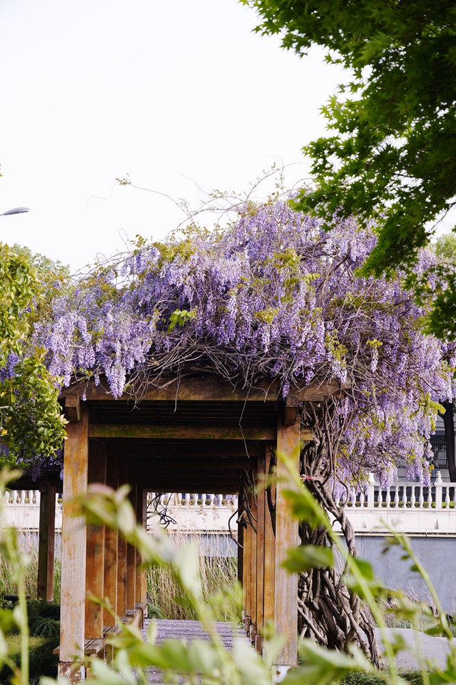 一到春天,眼睛忙不过来,腿也忙不过来。金山公园的紫藤花开了,一处在大广场的长廊,一处在百花洲的西出口。紫藤虽然没有张庙的茂盛,也比不上嘉定的紫藤长穗花海,但在黄墙高塔的映衬下,也是一处休闲打卡的好去处。赶紧地,错过等一年。