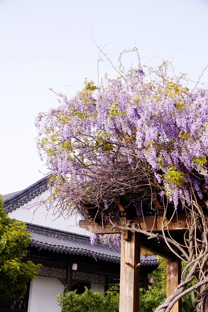 以前康复医院东面门有个沿古运河的茶楼门口,有一大片紫藤花,很大很香也很美,不知道现在还有不