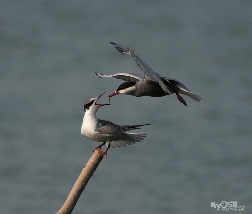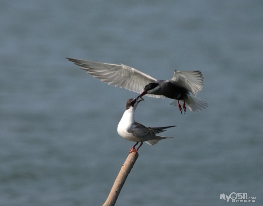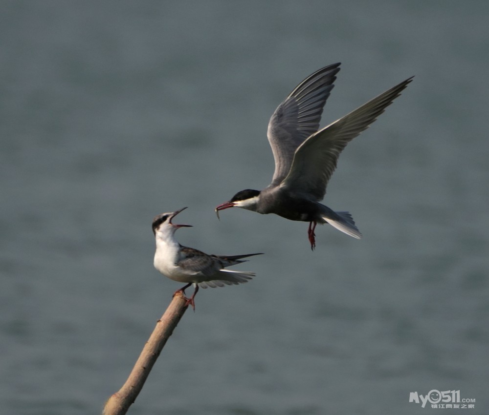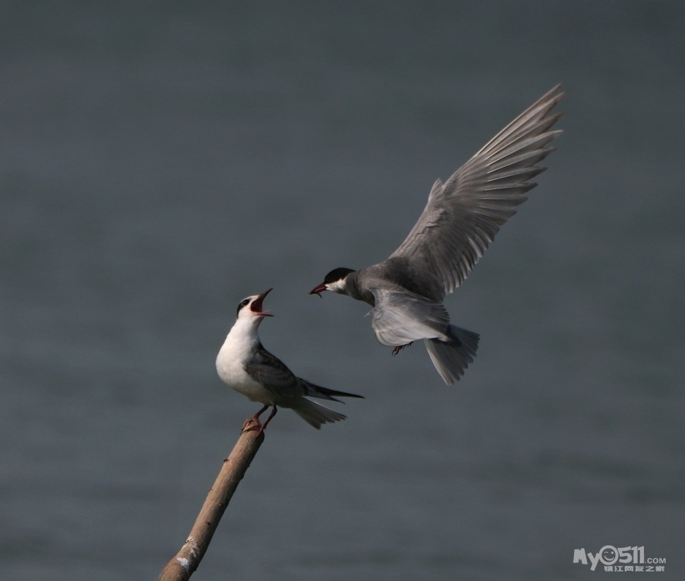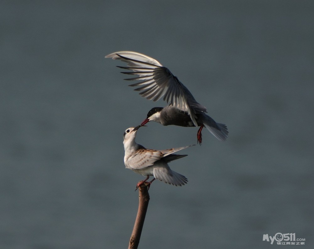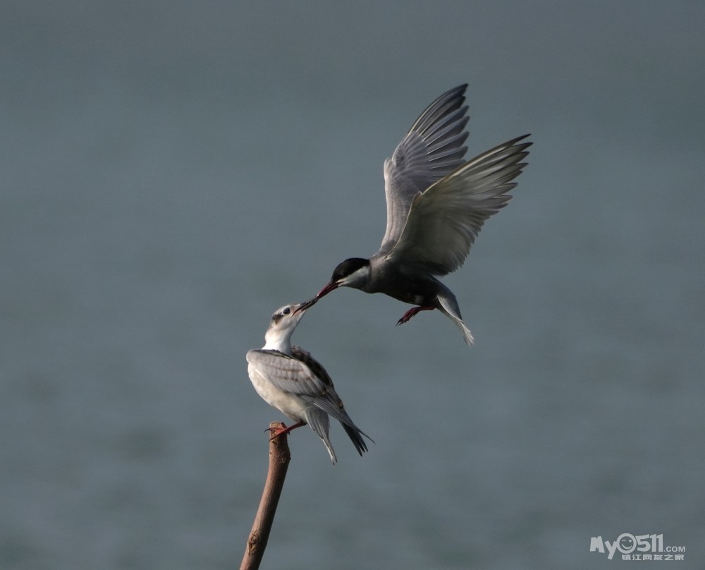 » 须浮鸥表演绝活—桩上悬停喂食。