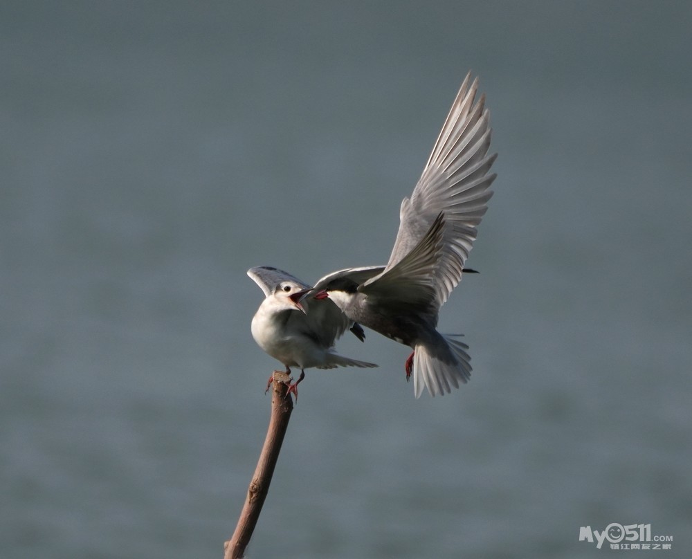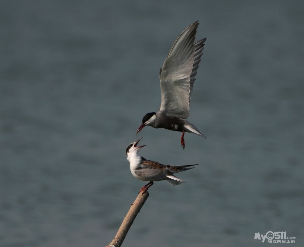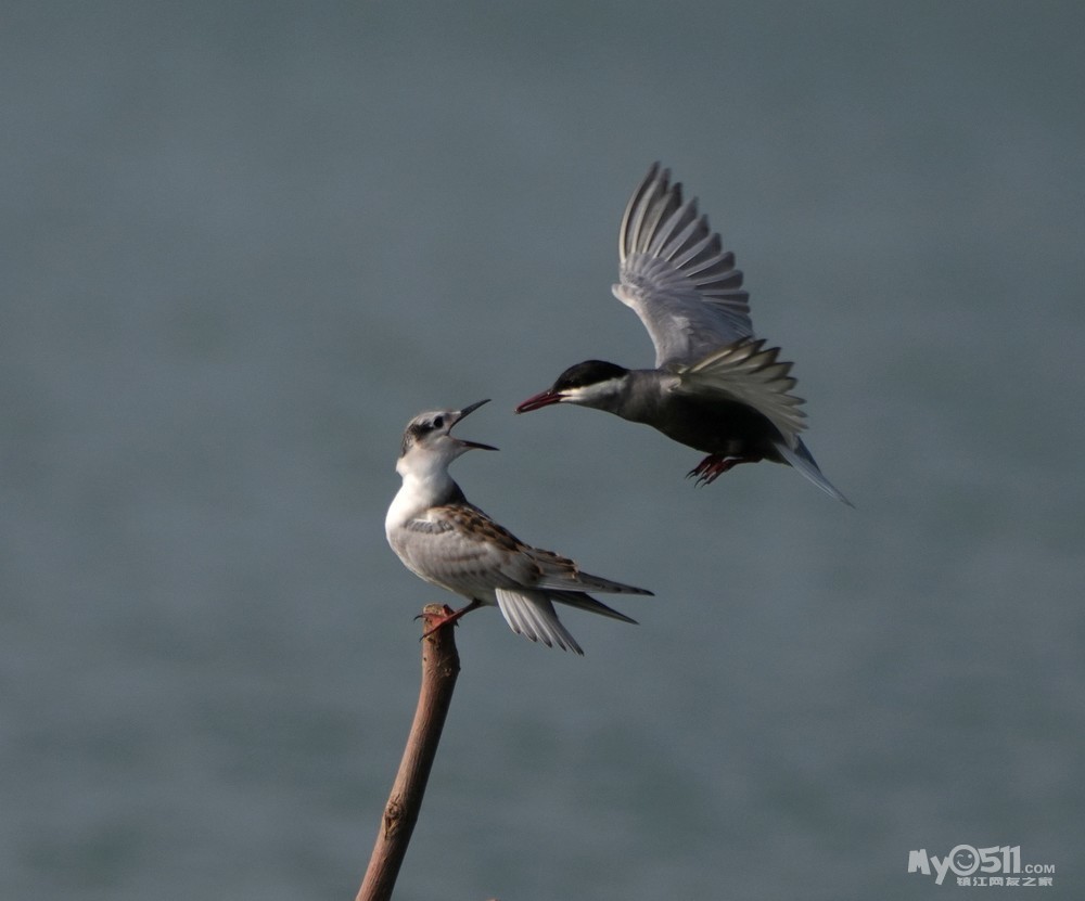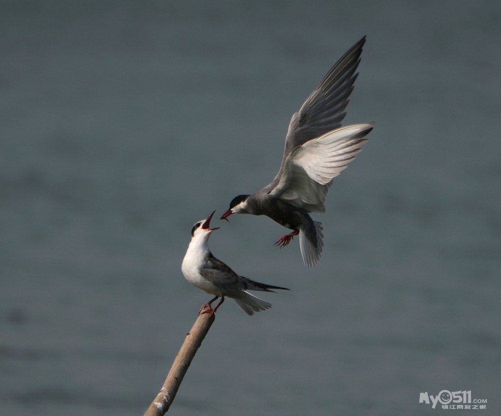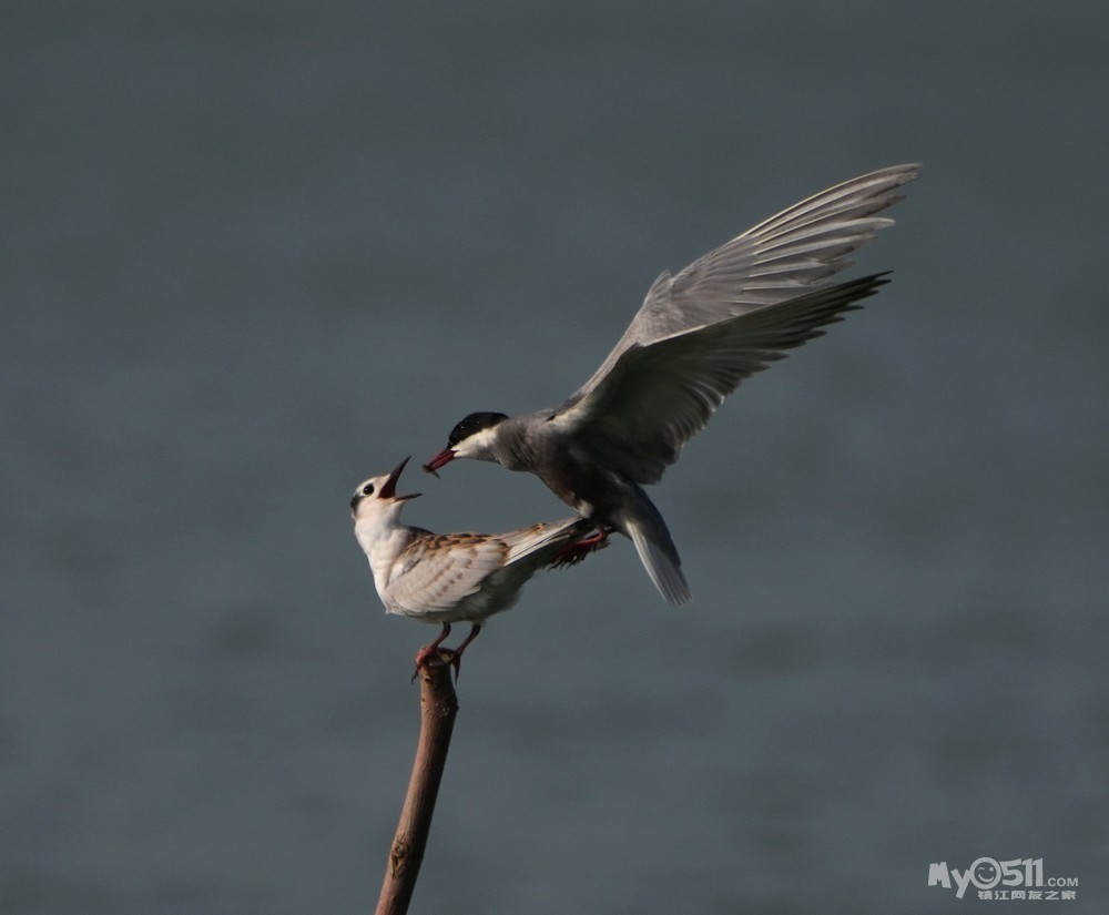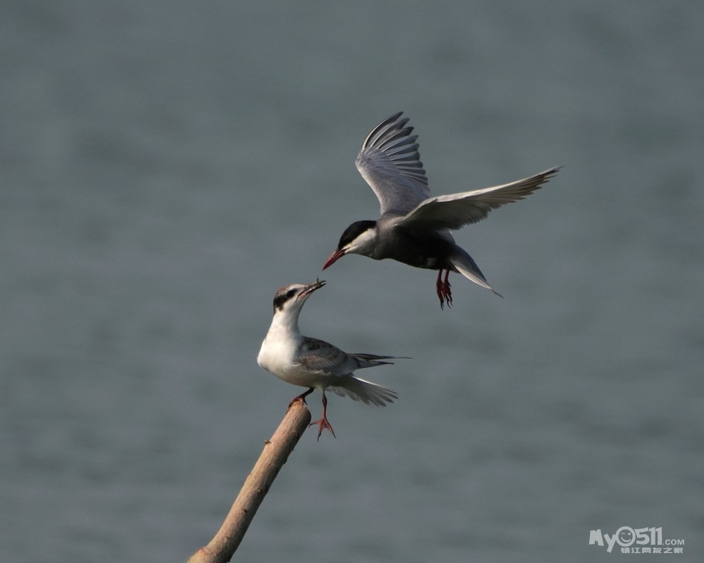 » 须浮鸥表演绝活—桩上悬停喂食。