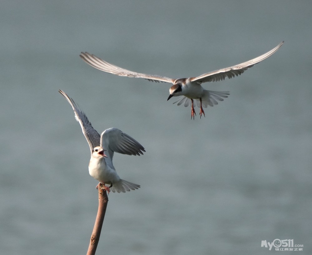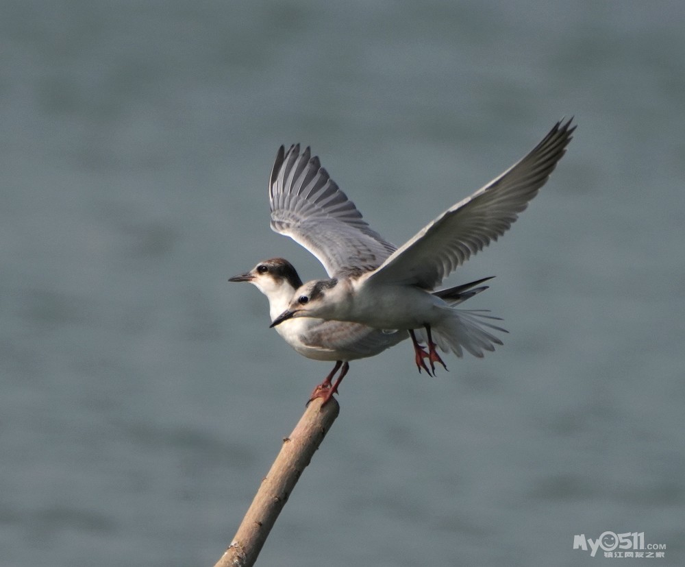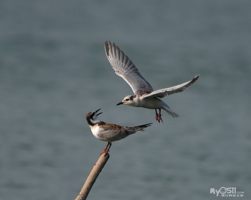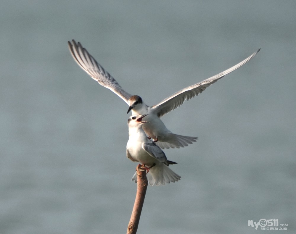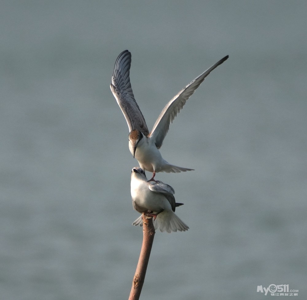 > 须浮鸥幼鸟桩上打斗玩耍