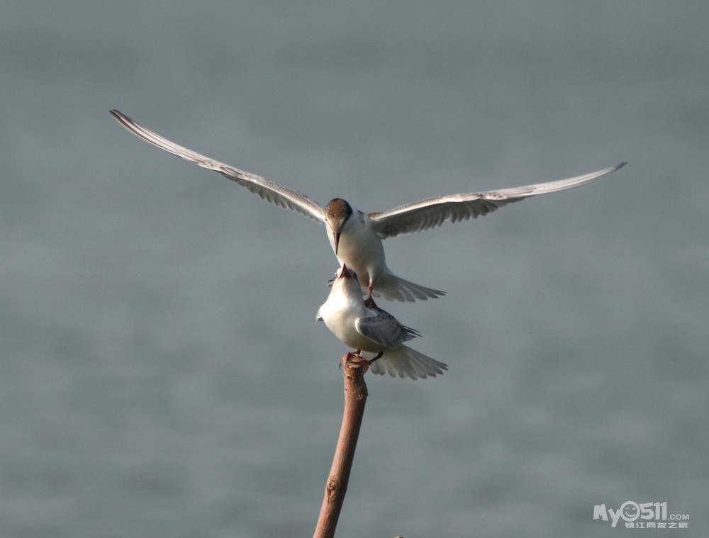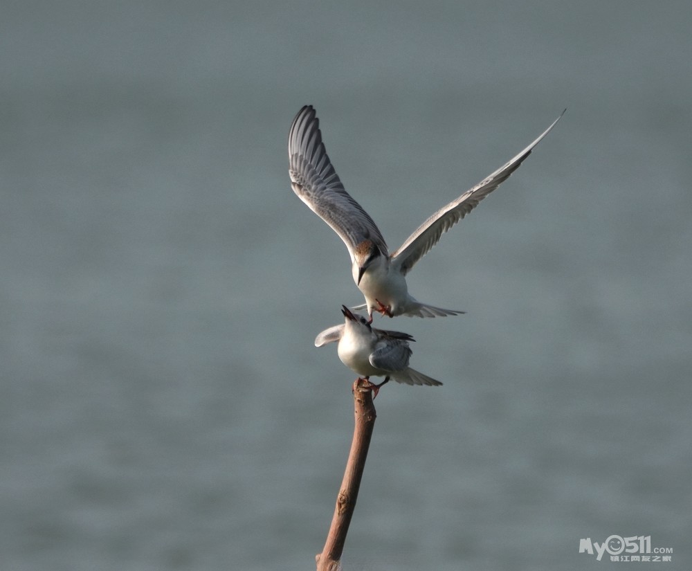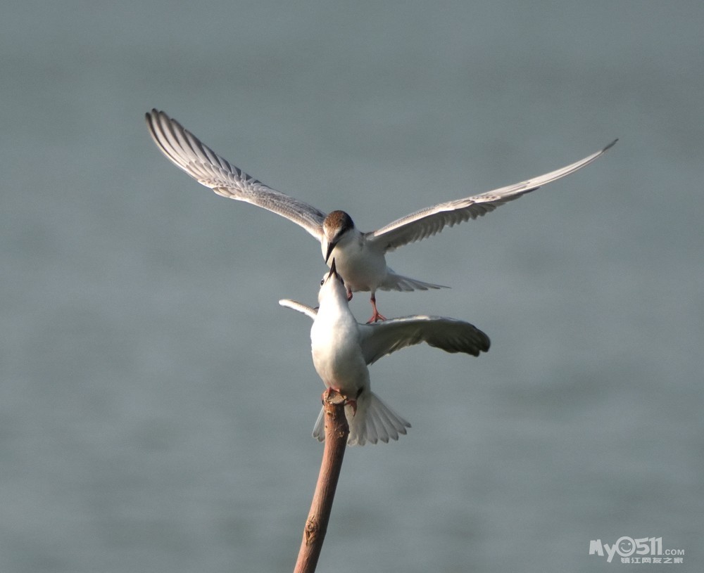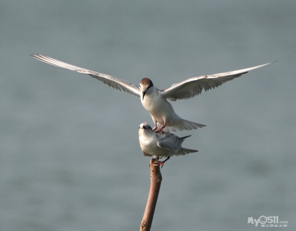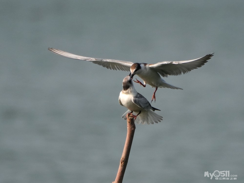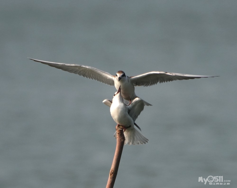 > 须浮鸥幼鸟桩上打斗玩耍