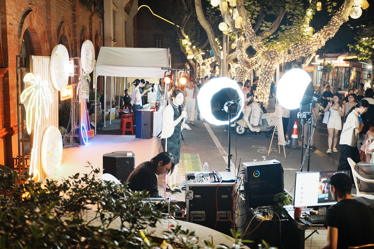 从宝盖路京畿路伯先路的三叉路口,先逛了京畿路,驻足润州区的旗袍秀活动直播,小姐姐的表演很精彩,转了转京畿市集,活动动不少,回到伯先路博物馆门口搞了京畿路解压节,DJ的打麦声震天响,吃吃喝喝看表演,最后穿过西津渡,回家。恰逢周末,又是七夕,人流量还是不少的。