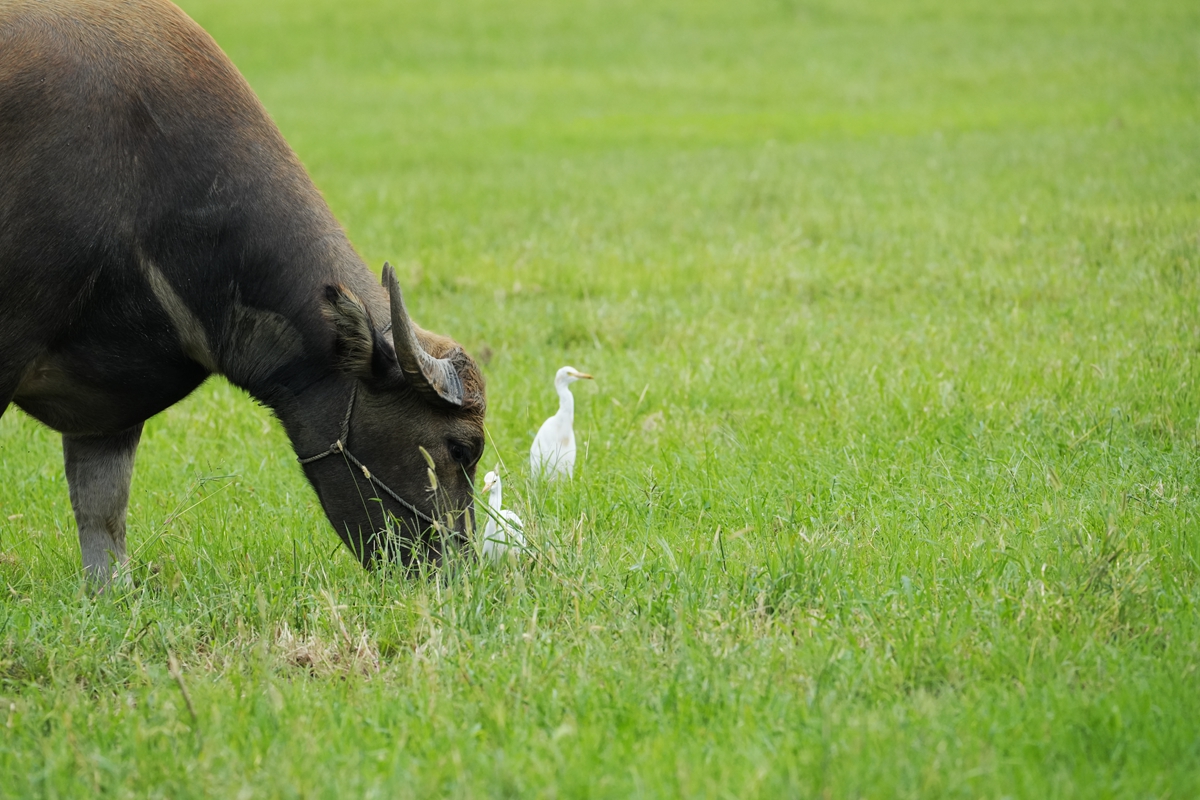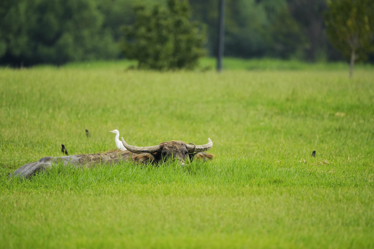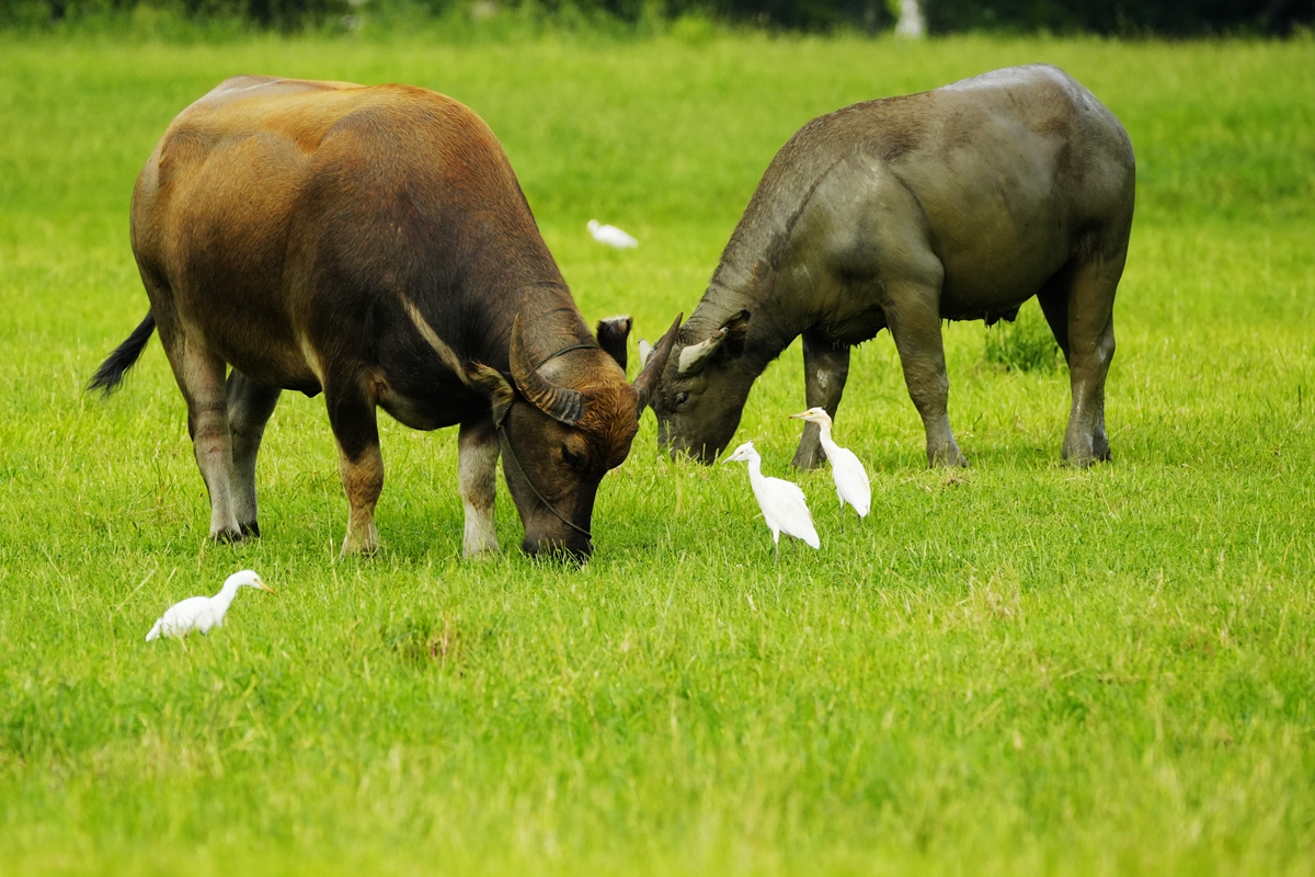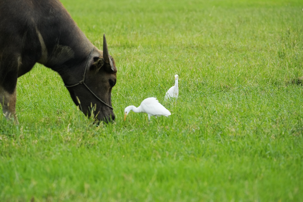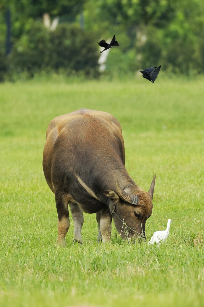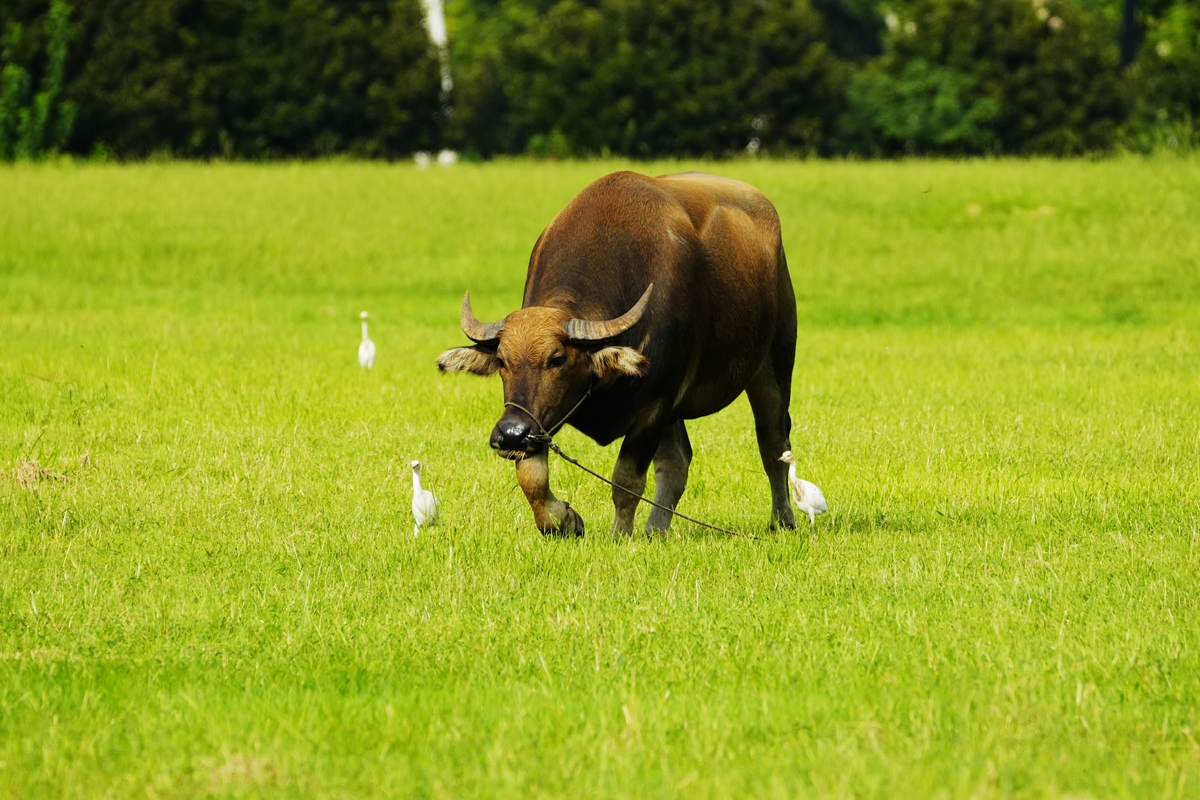 路过丁卯大䓍地,牛丁兴旺,䓍长鹭飞,捏几张
