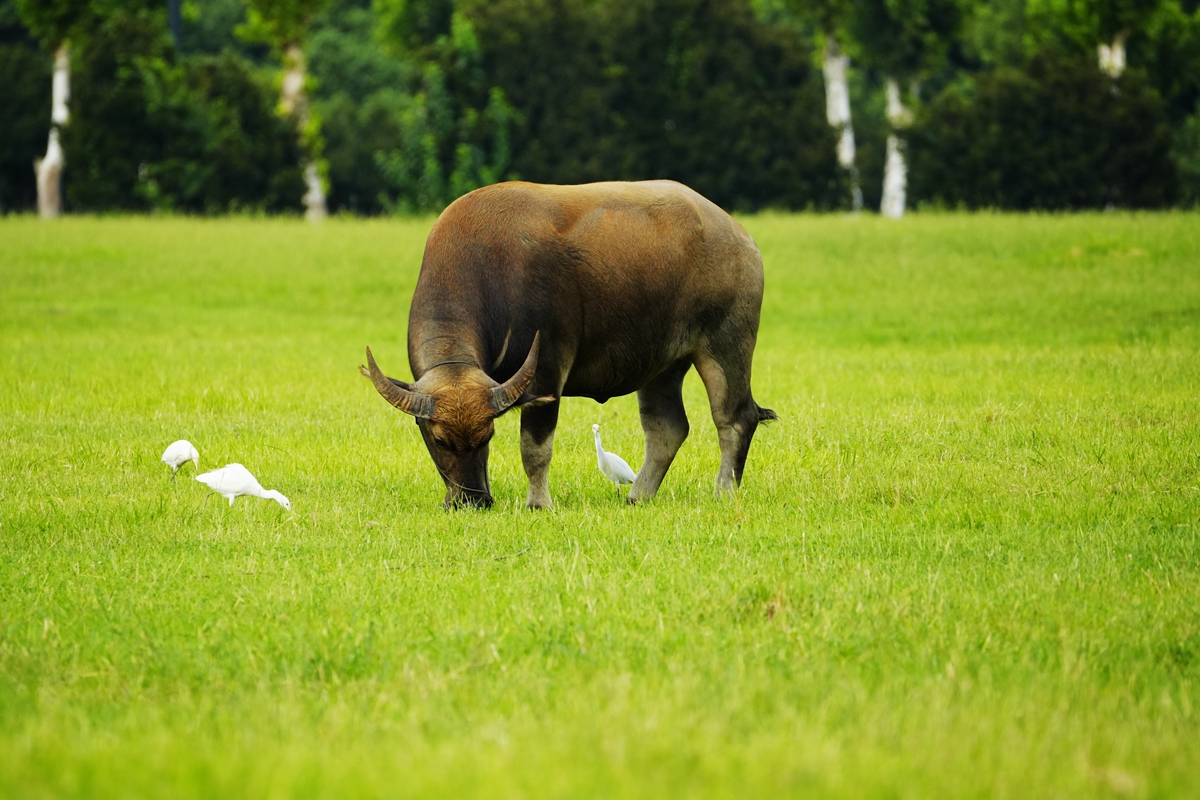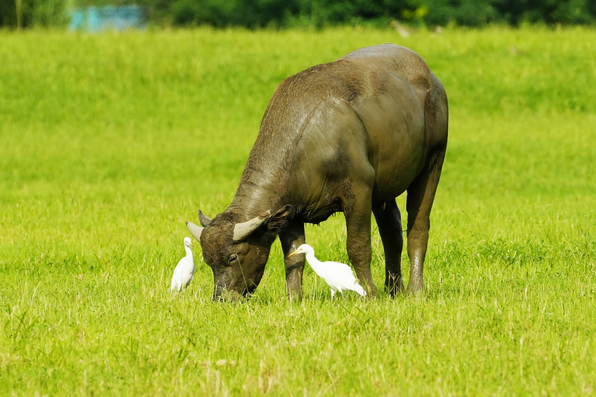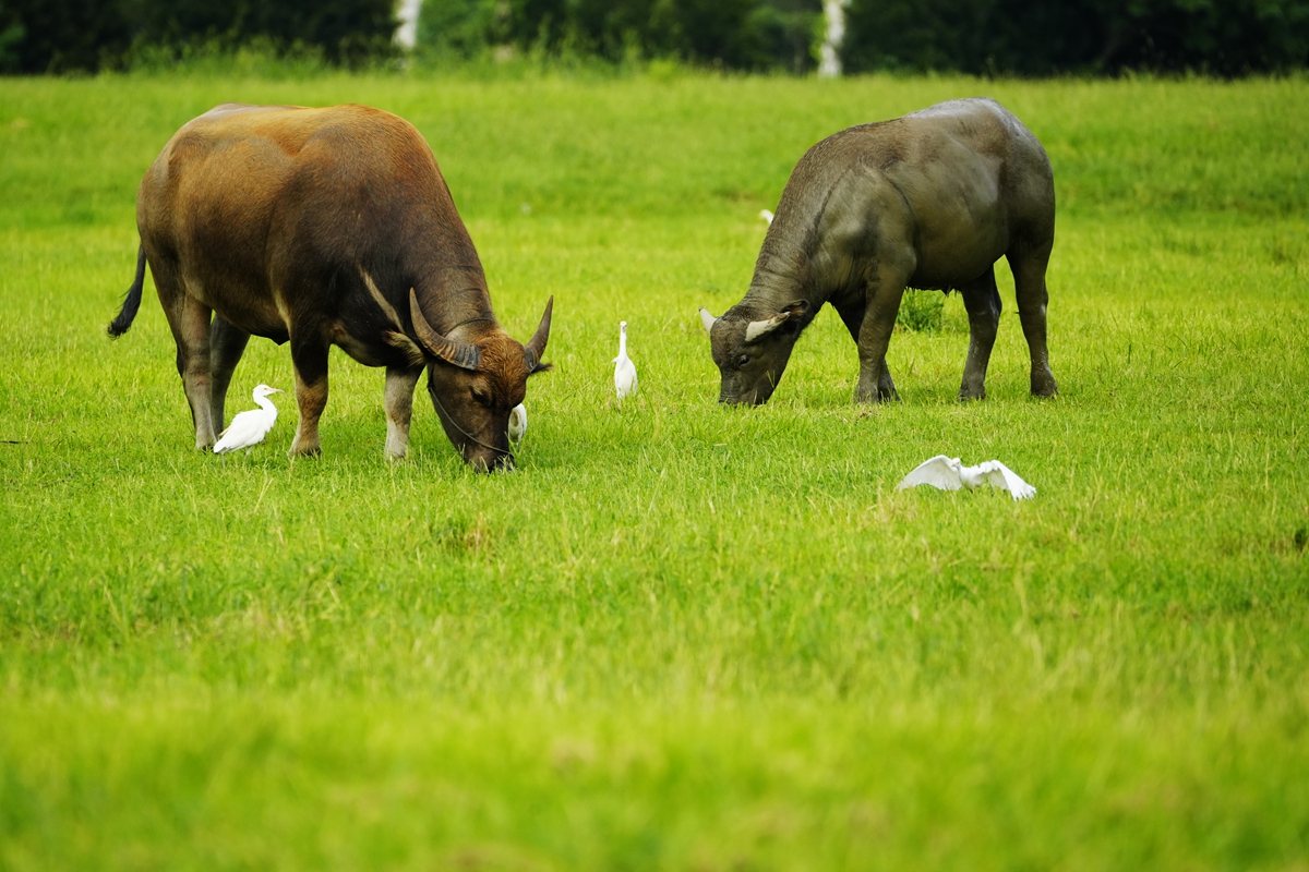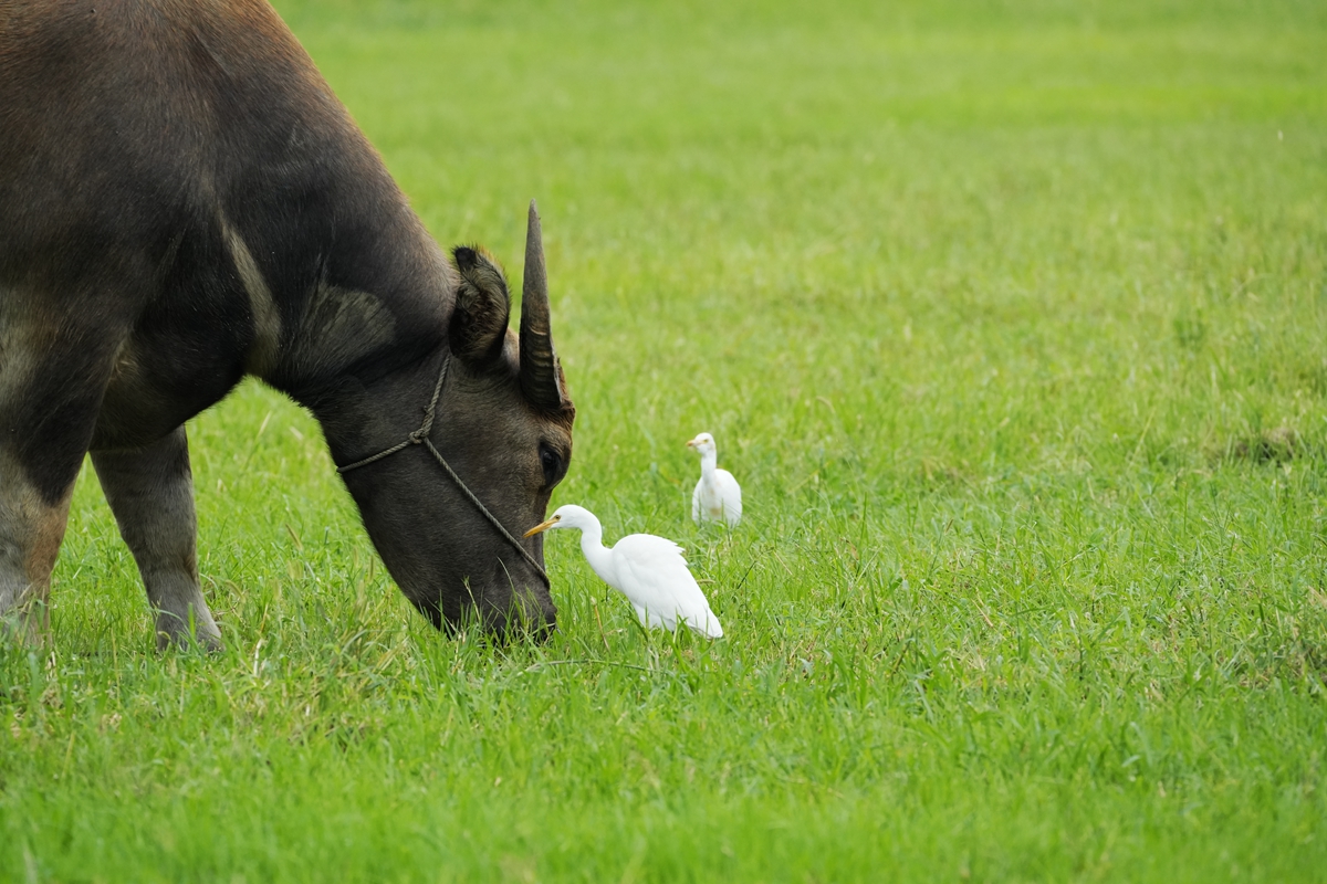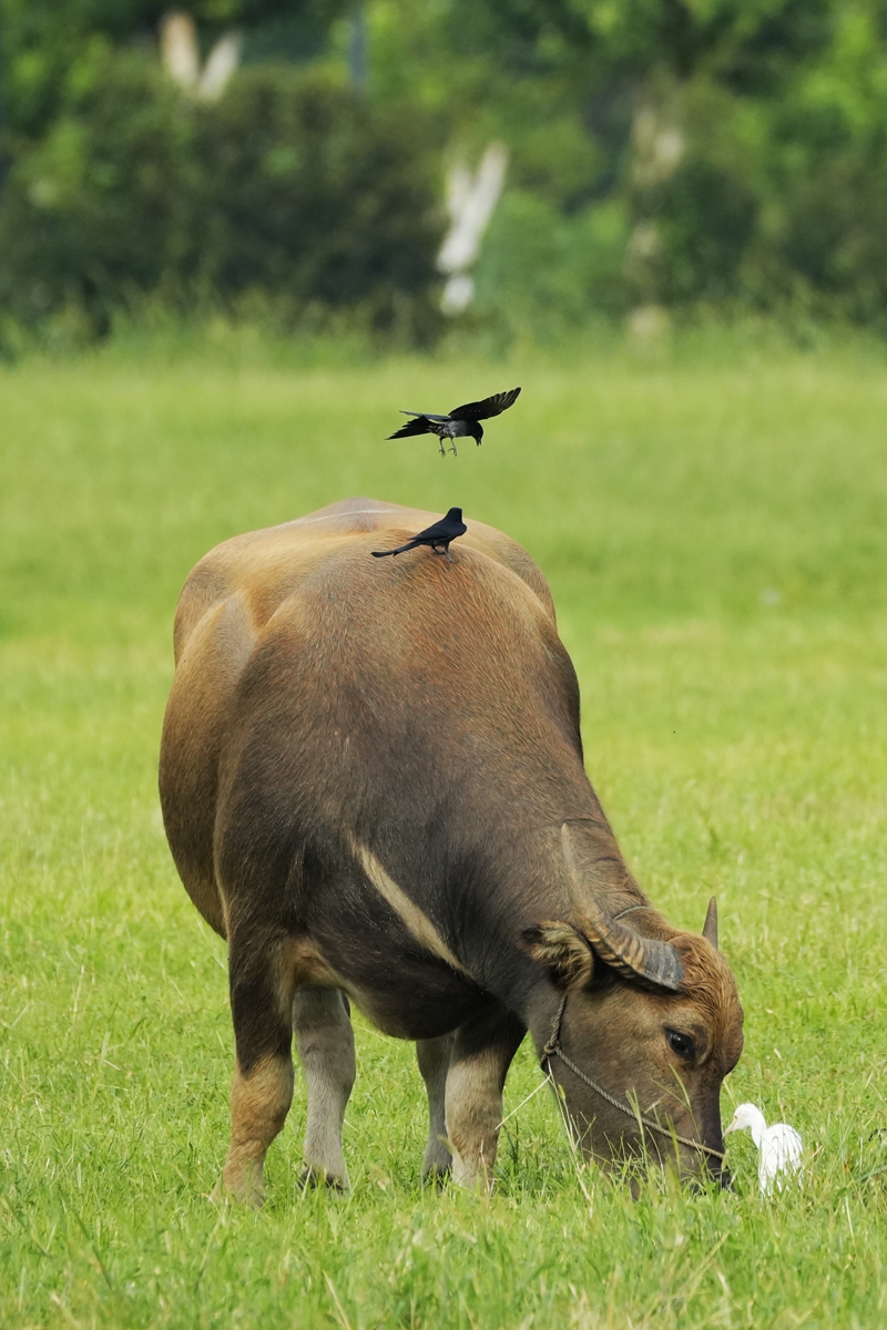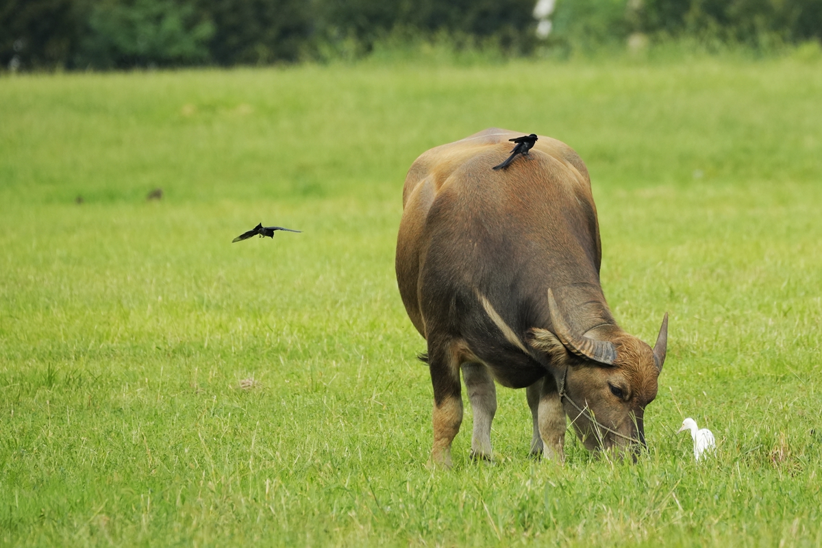 路过丁卯大䓍地,牛丁兴旺,䓍长鹭飞,捏几张