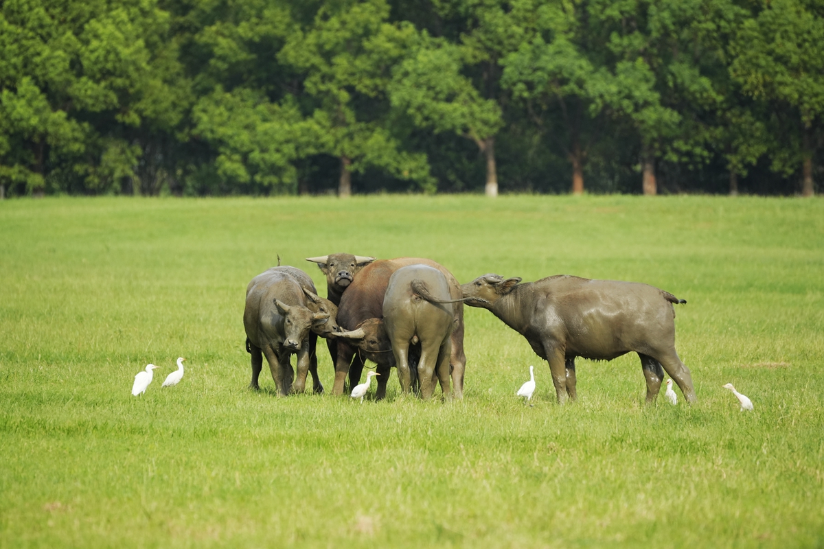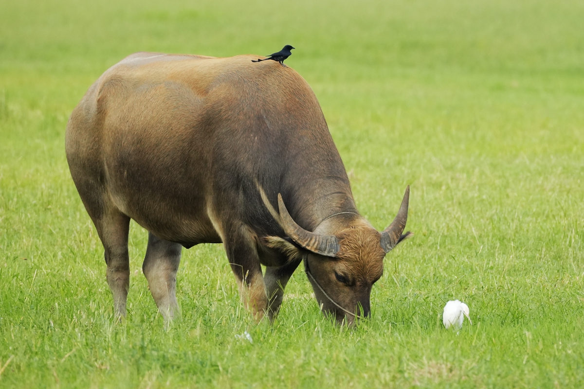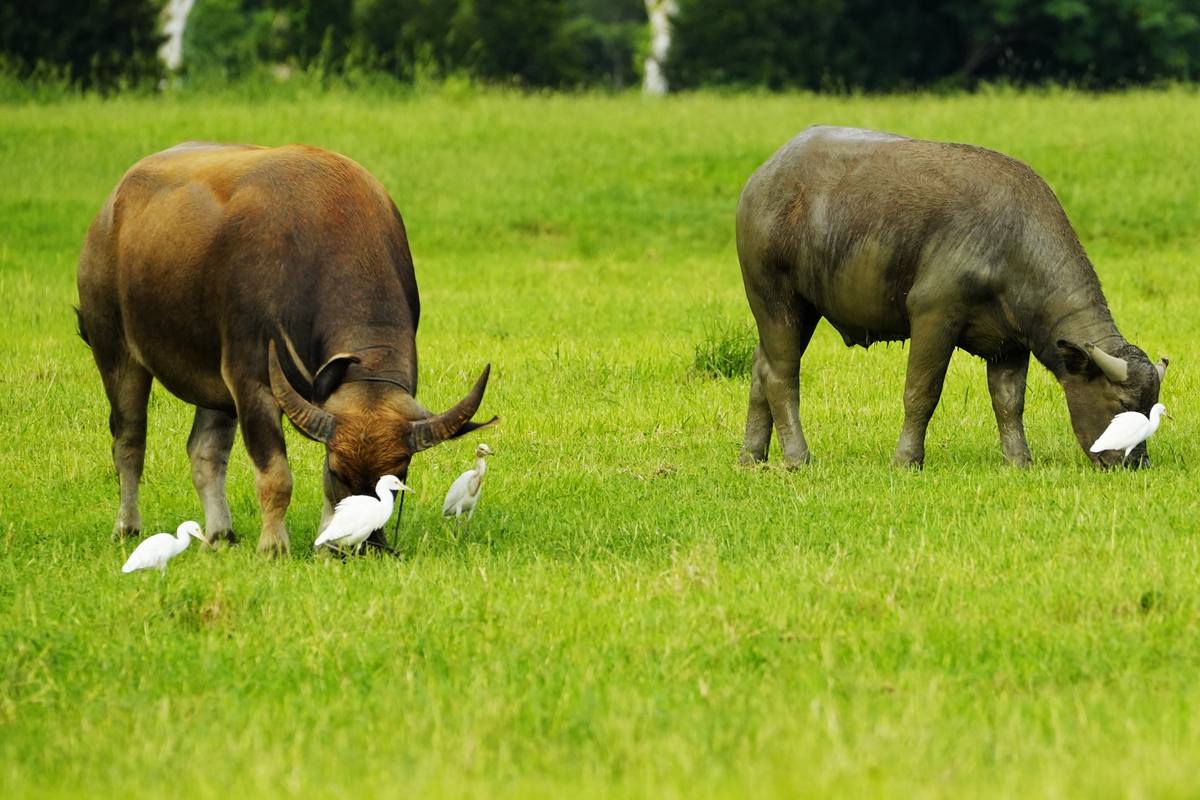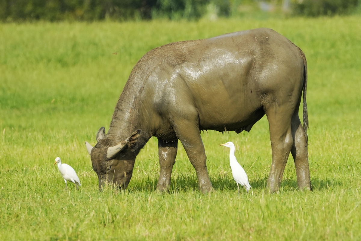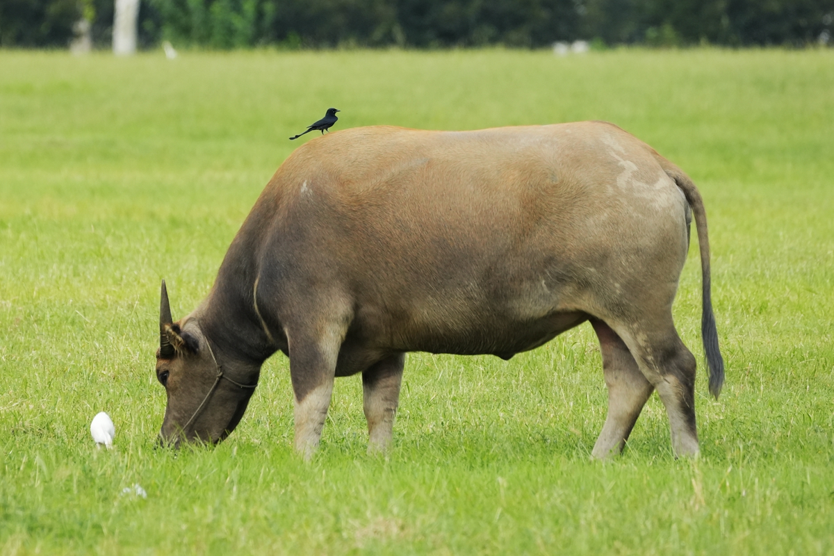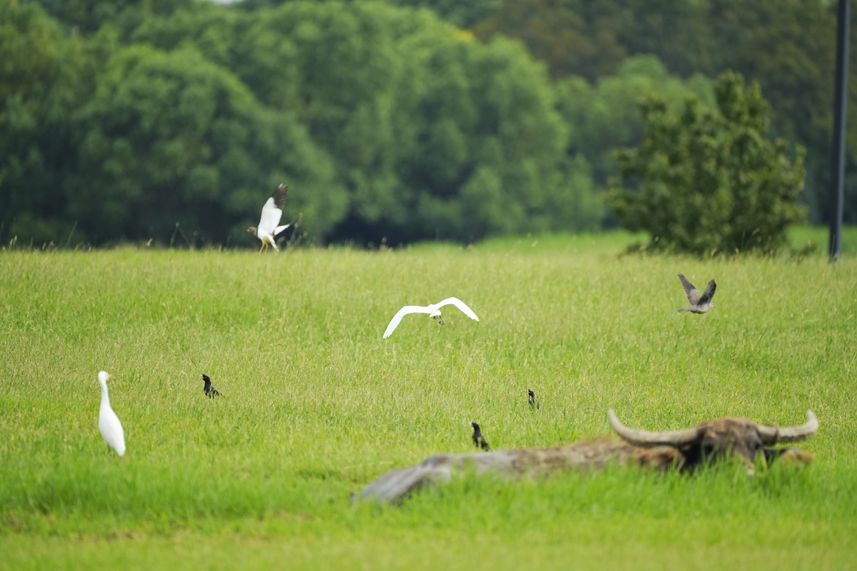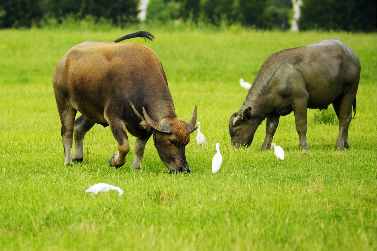 路过丁卯大䓍地,牛丁兴旺,䓍长鹭飞,捏几张
